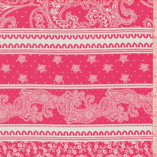 Raspberry/White Paisley Stripe Crinkled Crepe Fabric