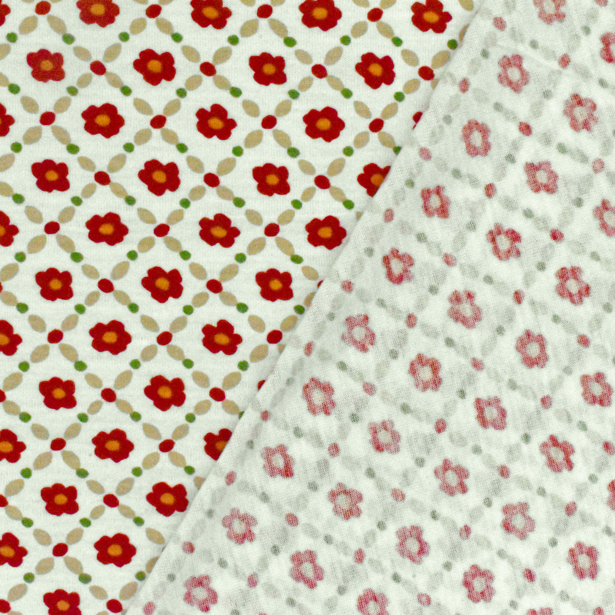 Red-Beige-Multi Floral Trellis Printed Jersey Knit Fabric