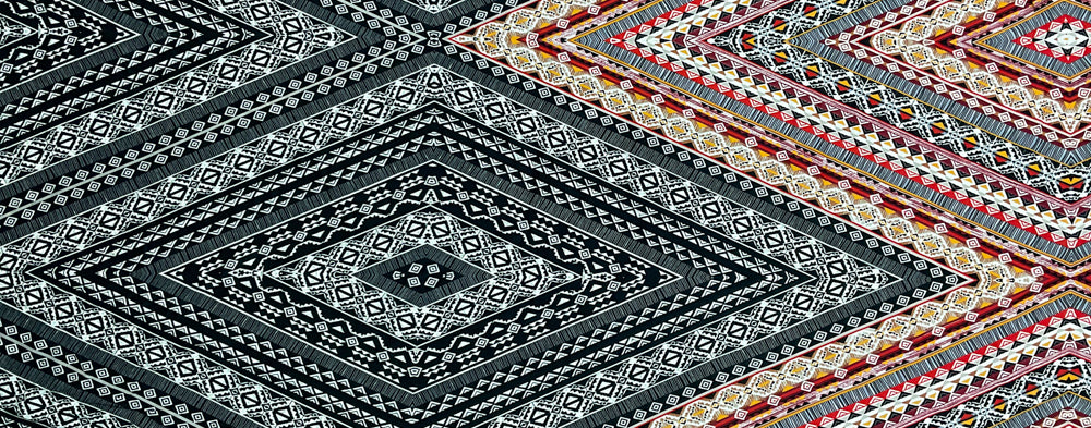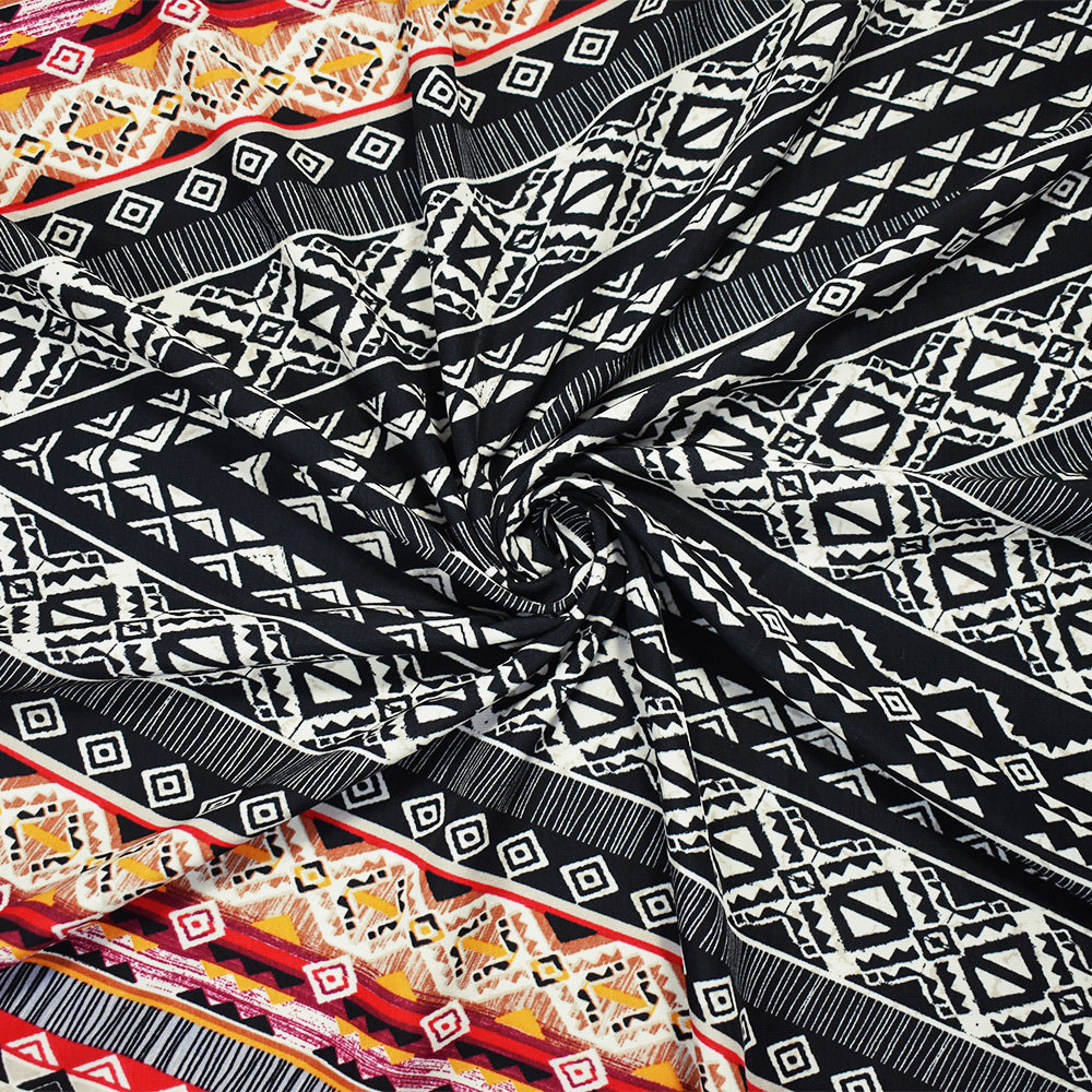 Red-Black-Multi Poly Aztec Printed Faille Woven Fabric