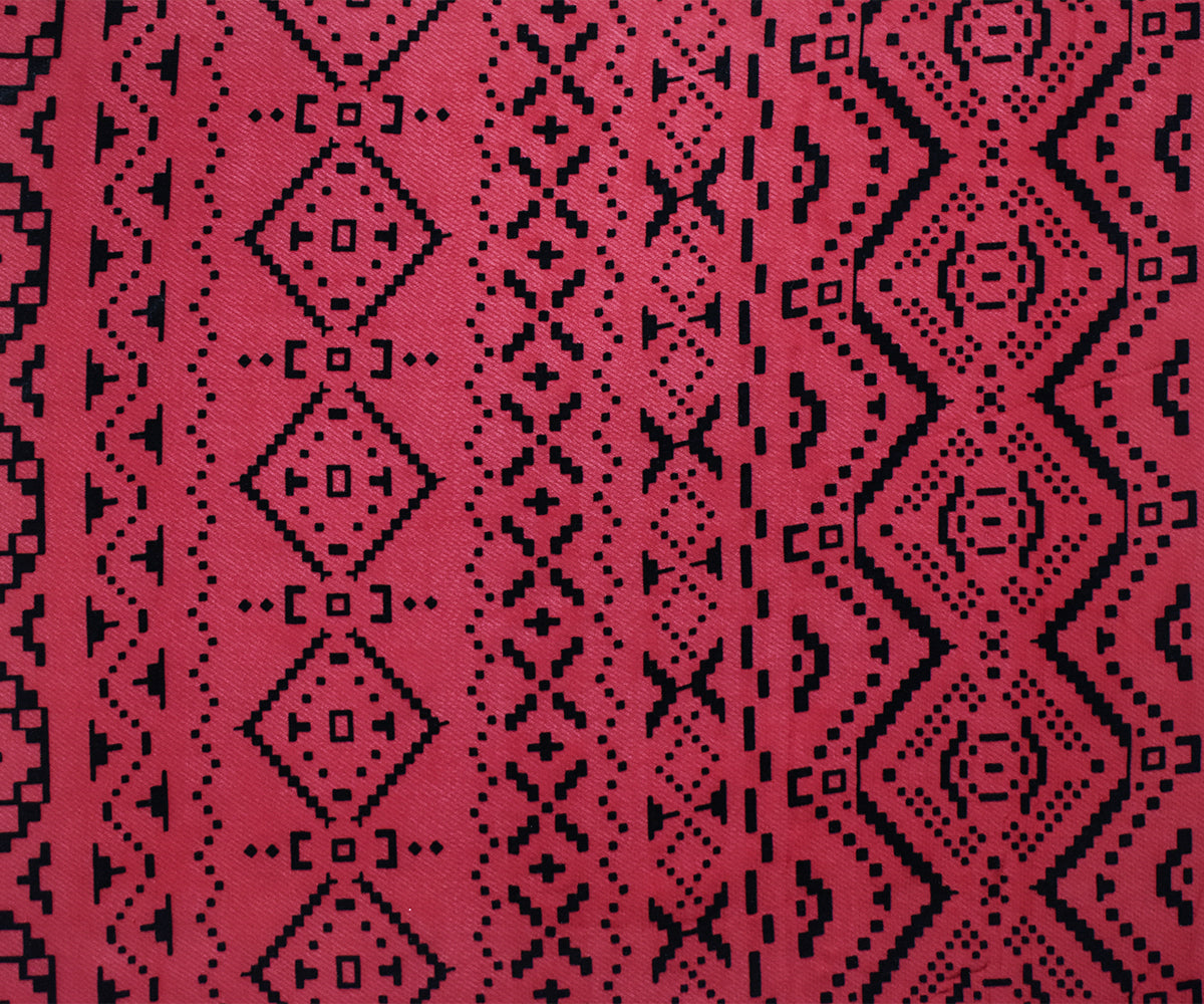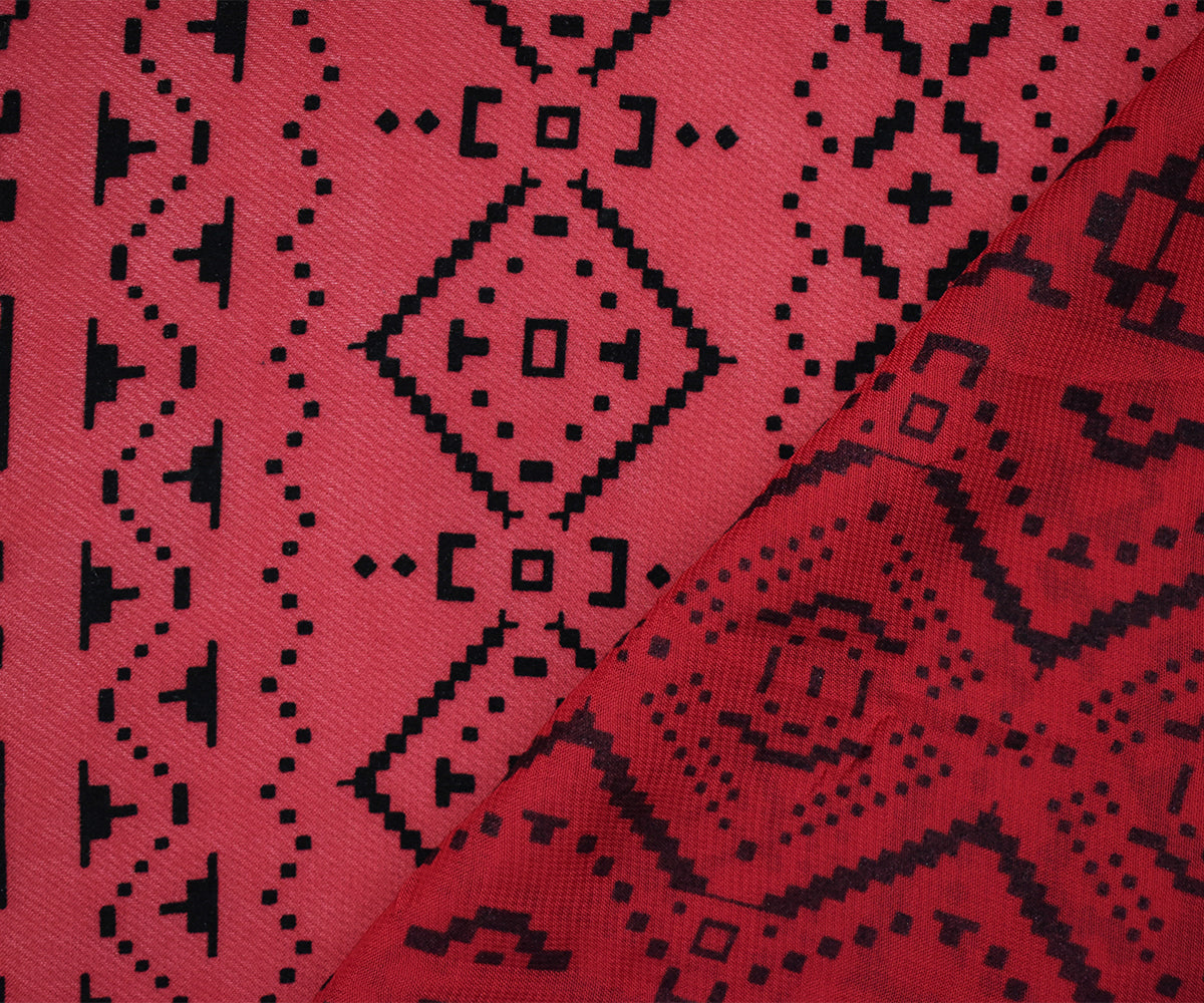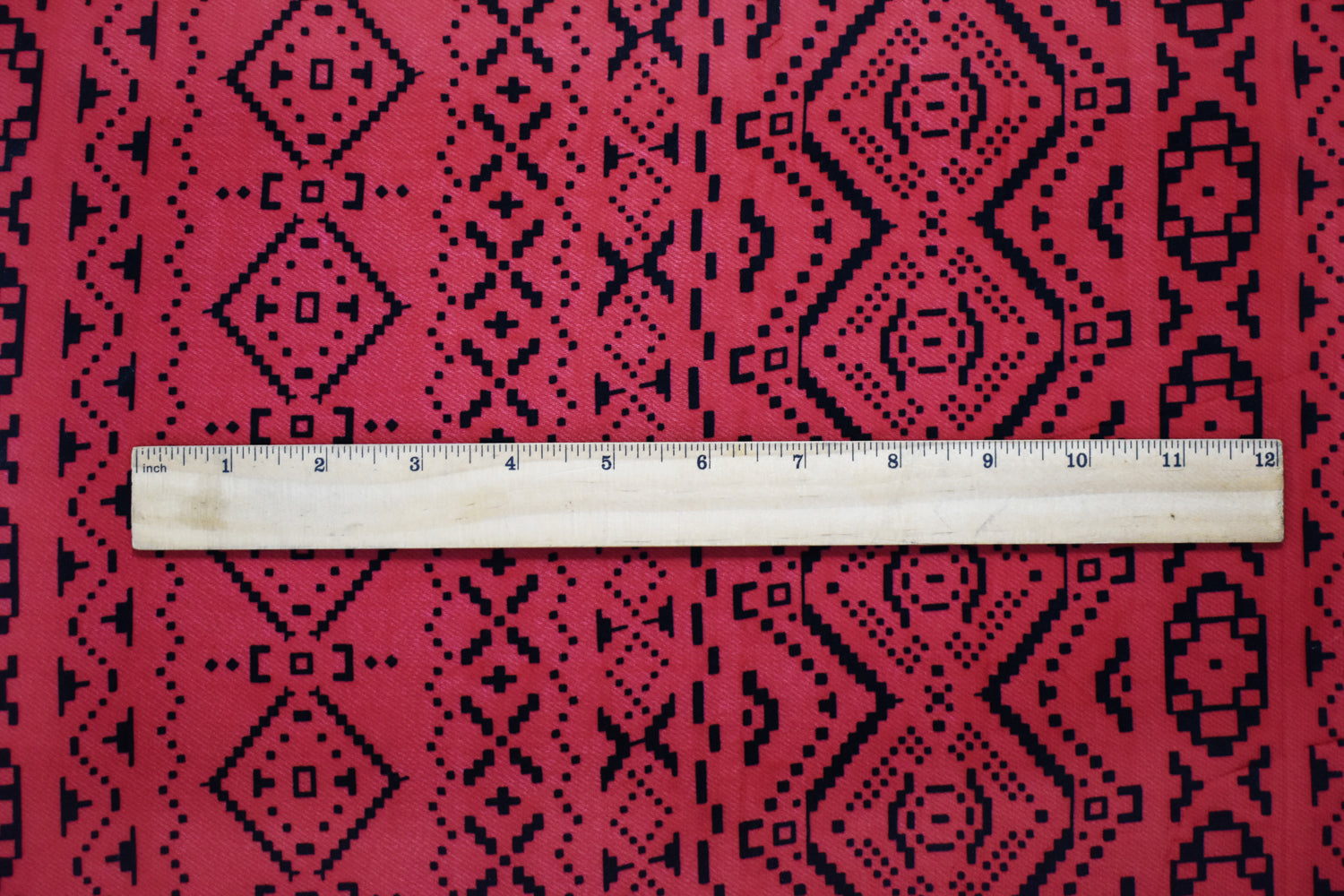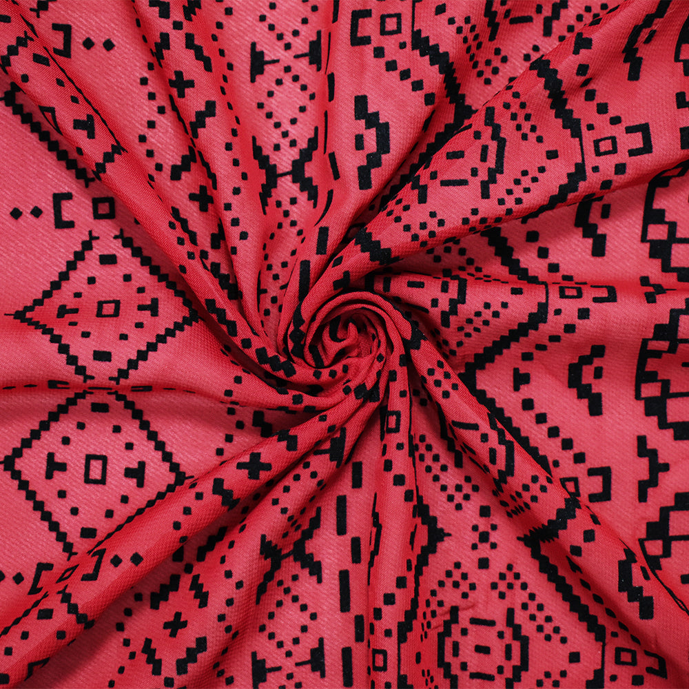 Red-Black Poly Aztec Geometric Velvet Flocked Printed Chiffon Woven Fabric
