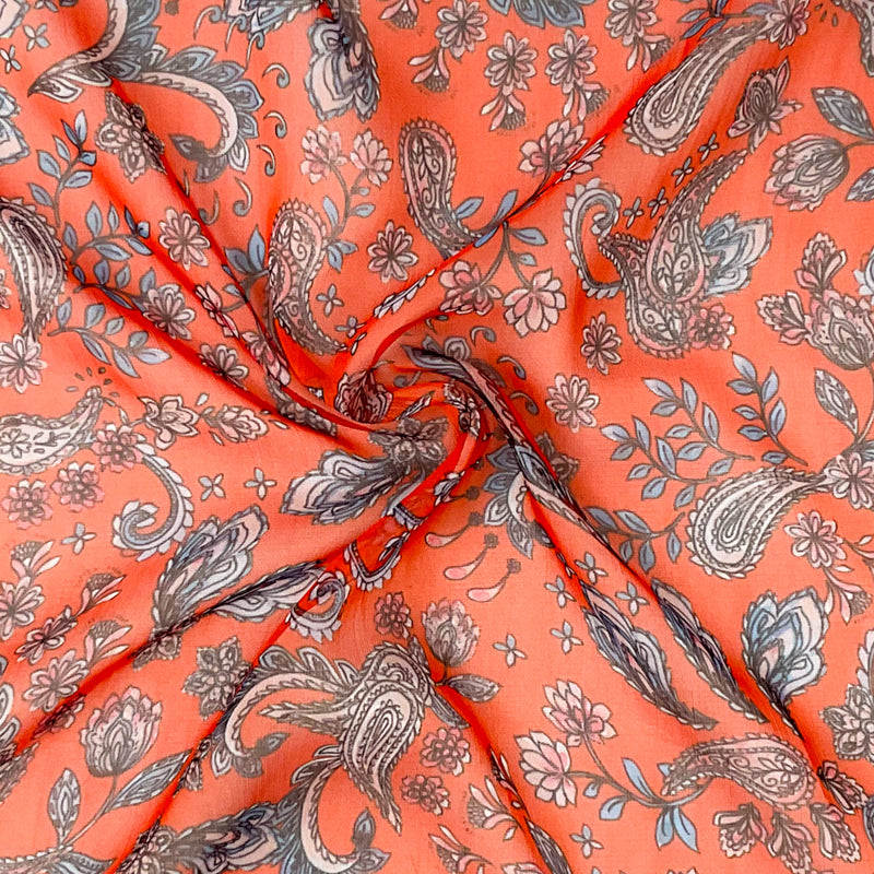 Red Orange-Multi Poly Floral Printed Yoryu Chiffon Woven Fabric
