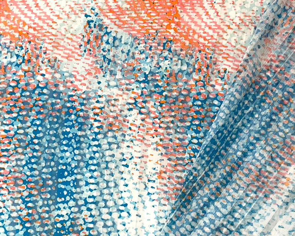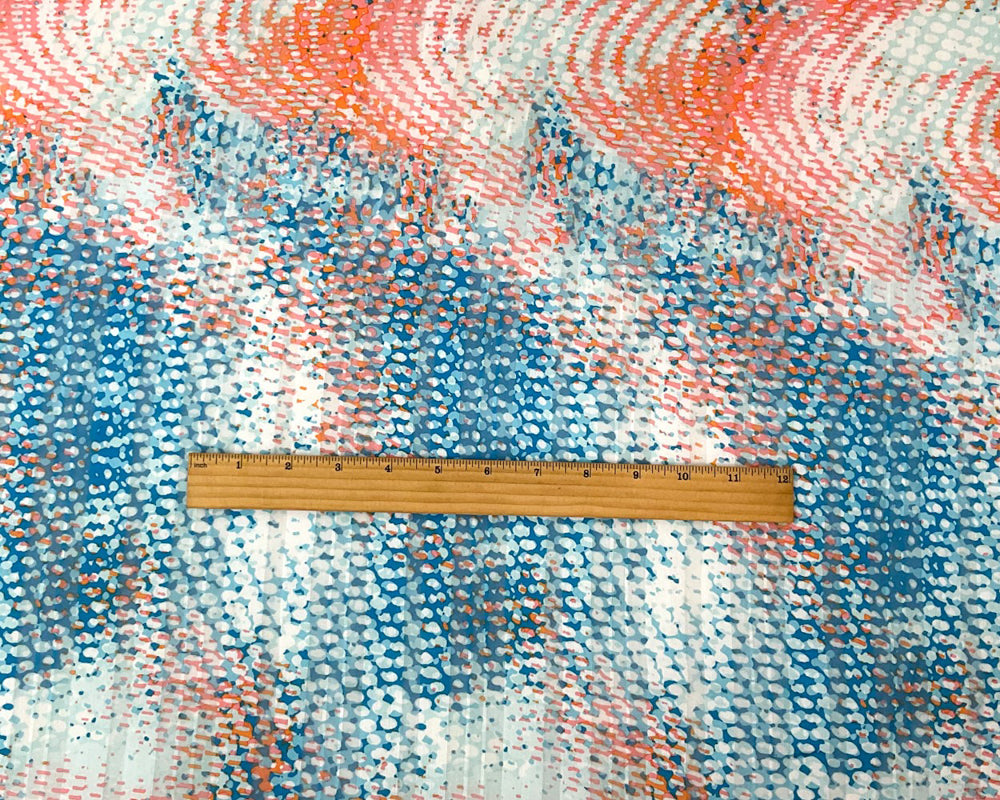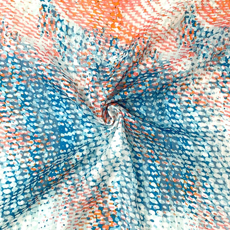 Teal-Multi Poly Abstract Print Satin Stripe Chiffon Woven Fabric