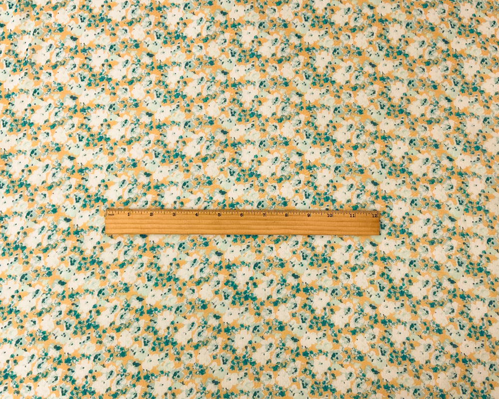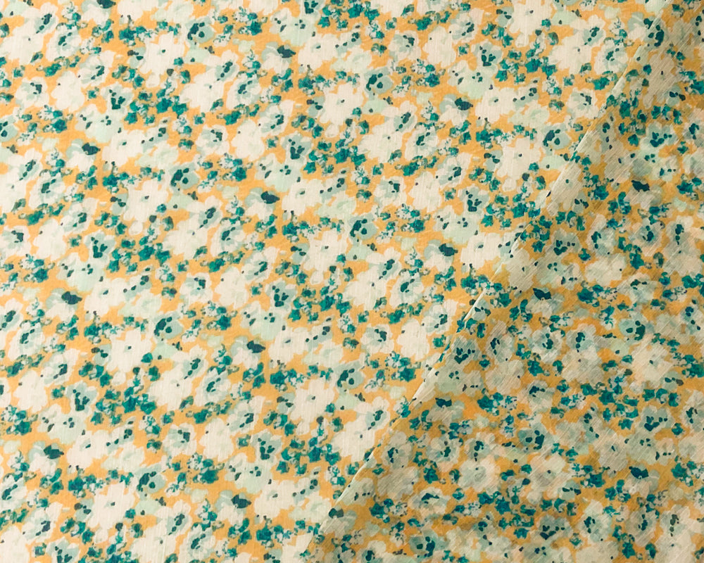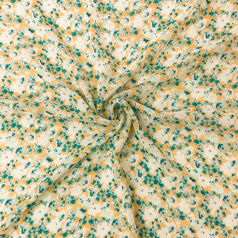 Teal-Multi Poly Floral Printed Crinkle Yoryu Chiffon Woven Fabric