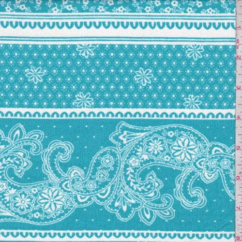 Turquoise/White Paisley Stripe Crinkled Crepe Fabric