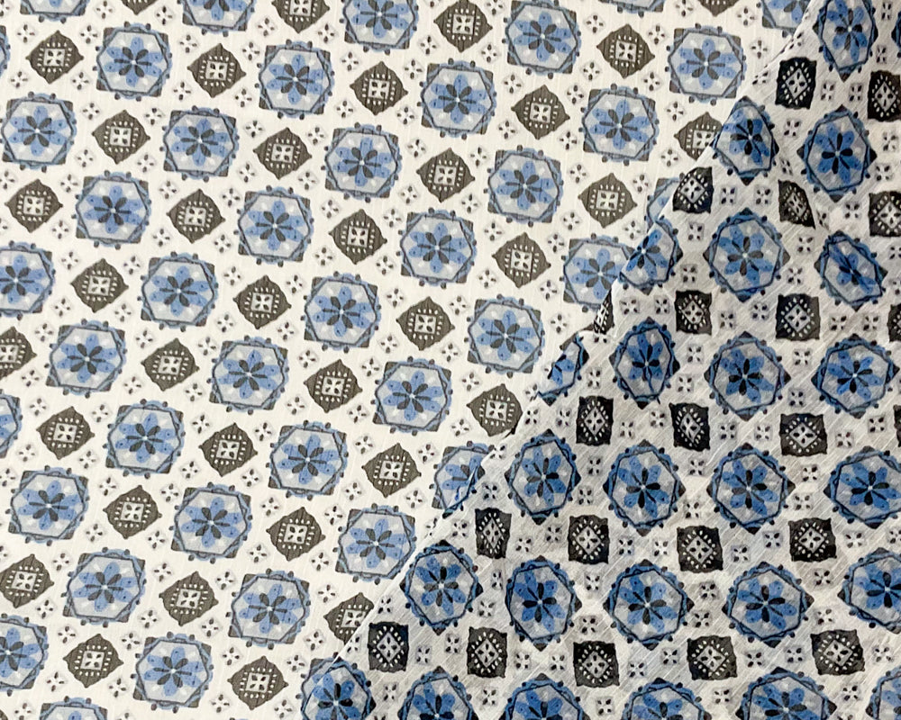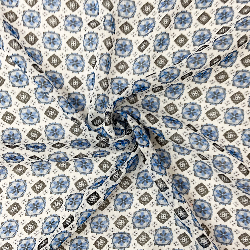 White-Multi Abstract Floral Printed Yoryu Chiffon Woven Fabric