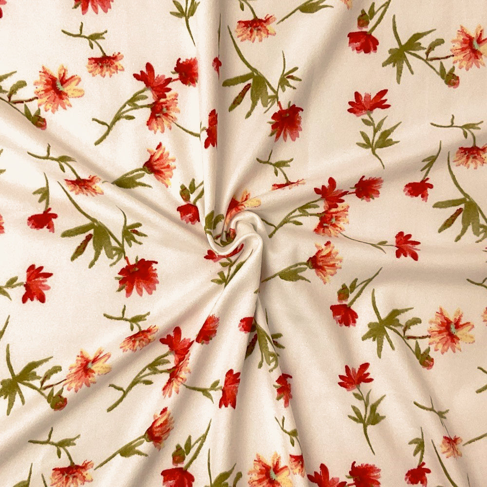 White-Multi Poly Spandex Stretch Floral Print DB Jersey Knit Fabric