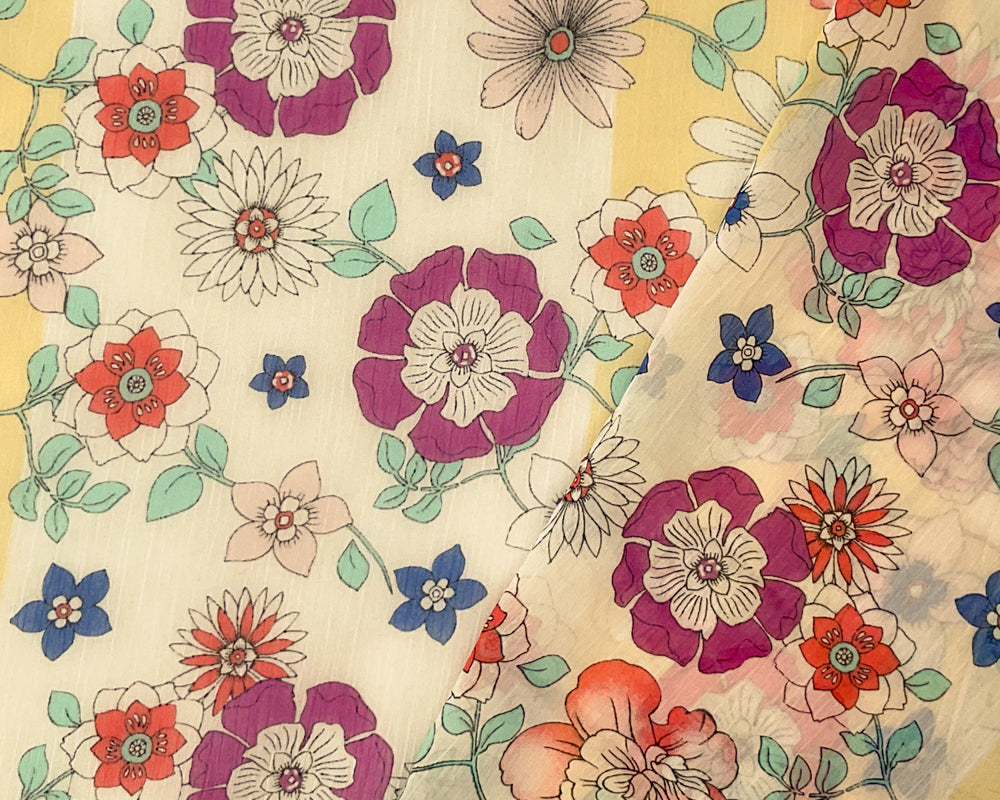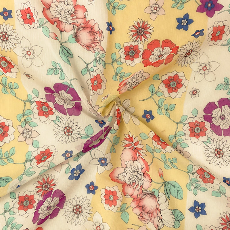 -Yellow-White-Multi Poly Floral Printed Crinkle Yoryu Chiffon Woven Fabric