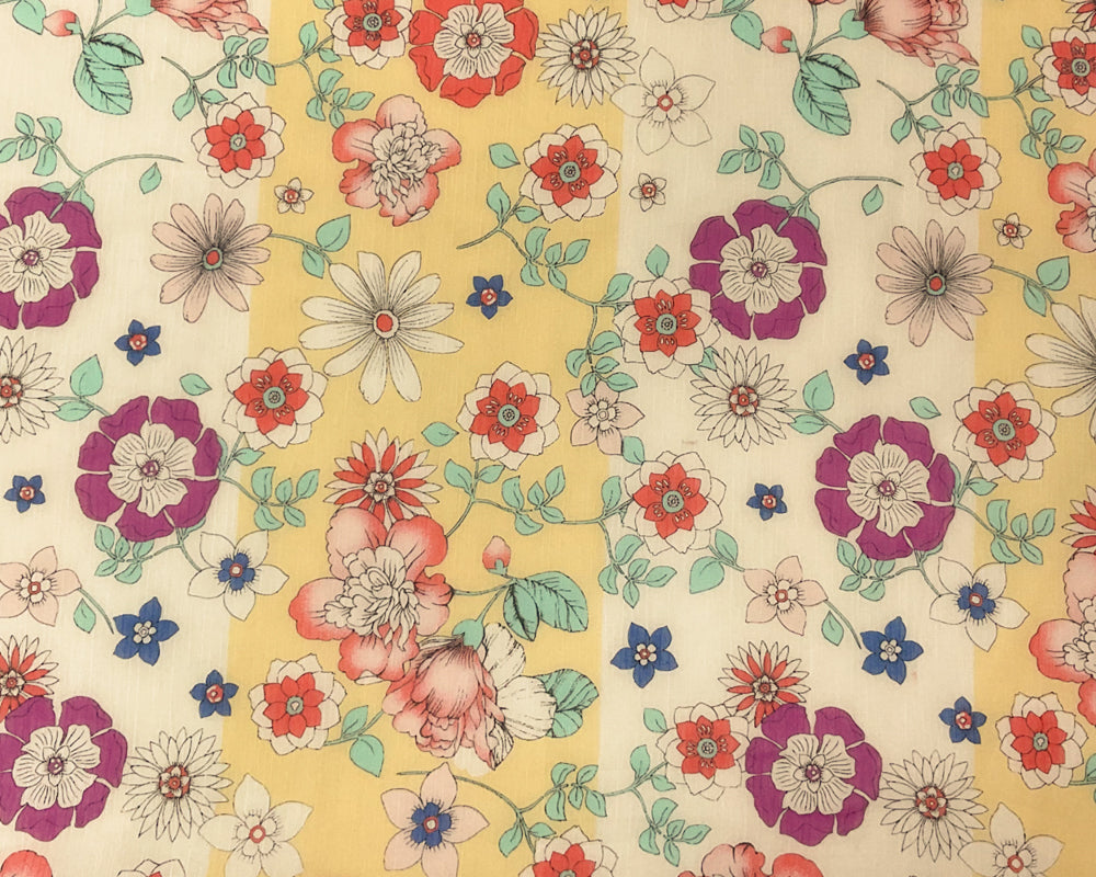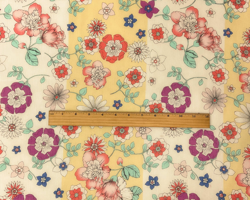 Yellow-Multi Poly Floral Print Crinkle Yoryu Chiffon Woven Fabric