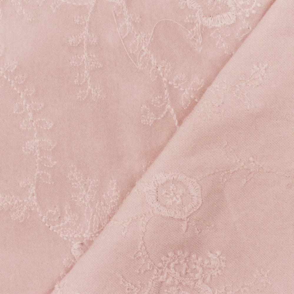 Baby Pink Floral Embroidered Cotton Velveteen Woven Fabric