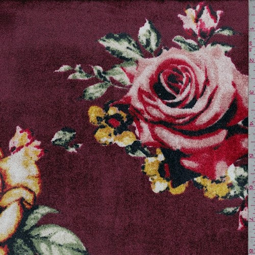 Burgundy Red/Multi Floral Print Stretch Velvet Knit Fabric