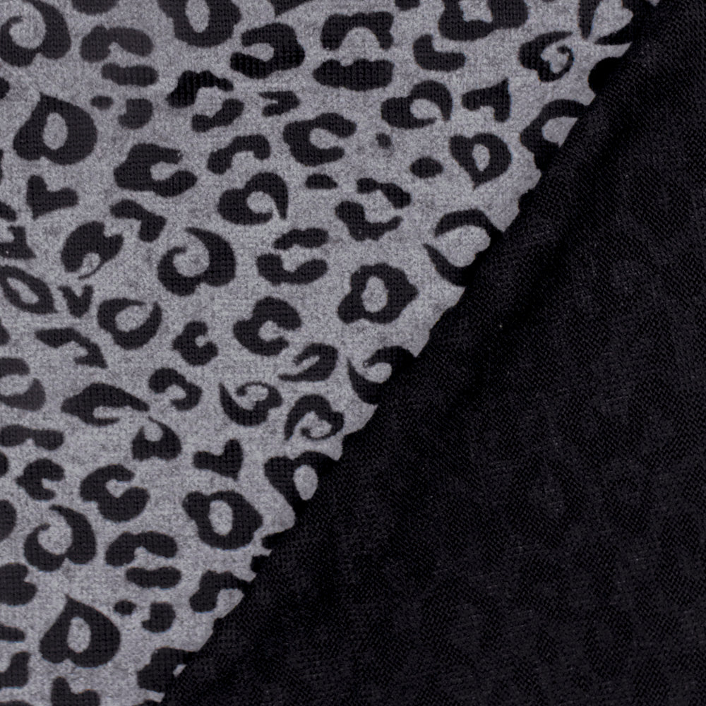 Gray-Black Leopard Velvet Flocked Stretch Jersey Knit Fabric