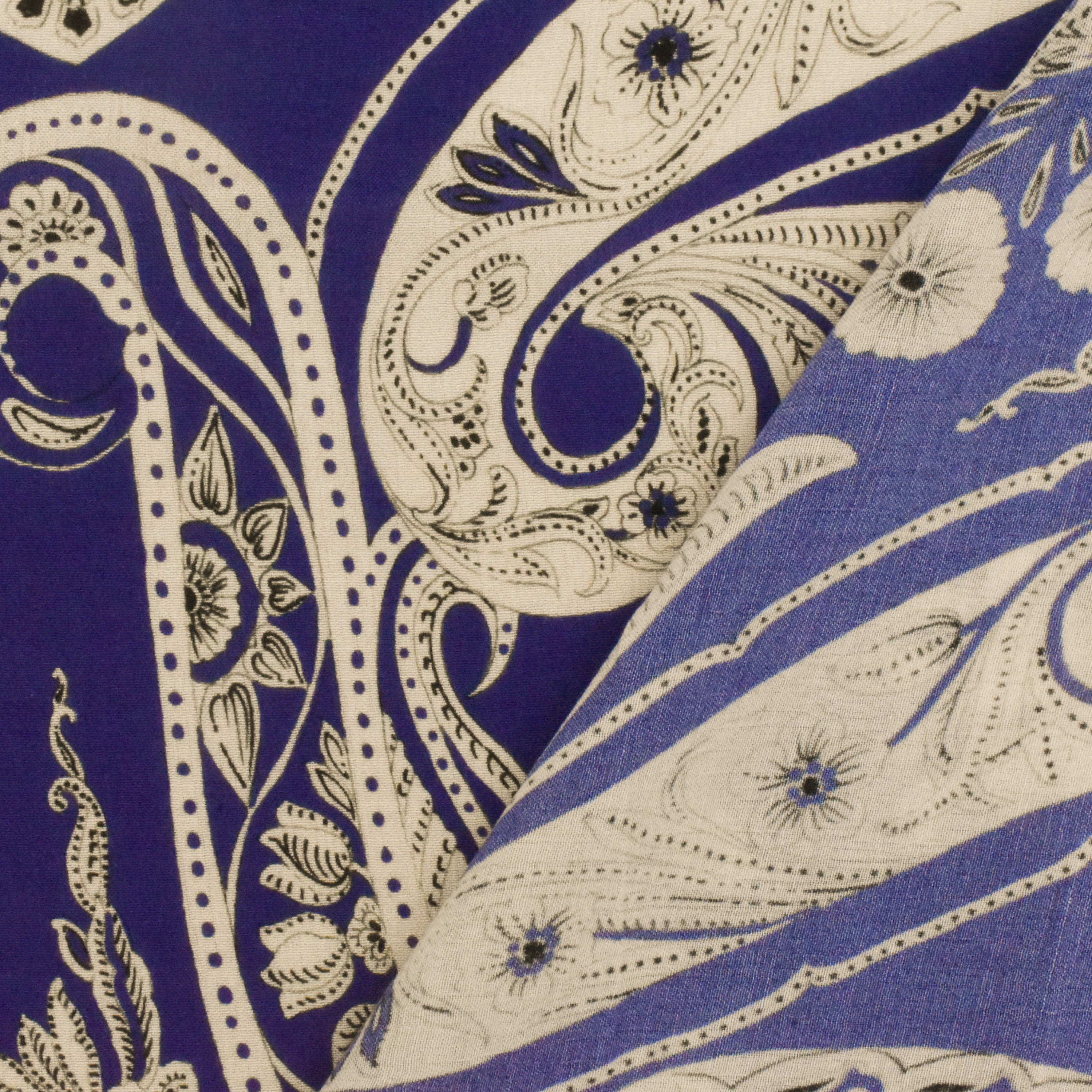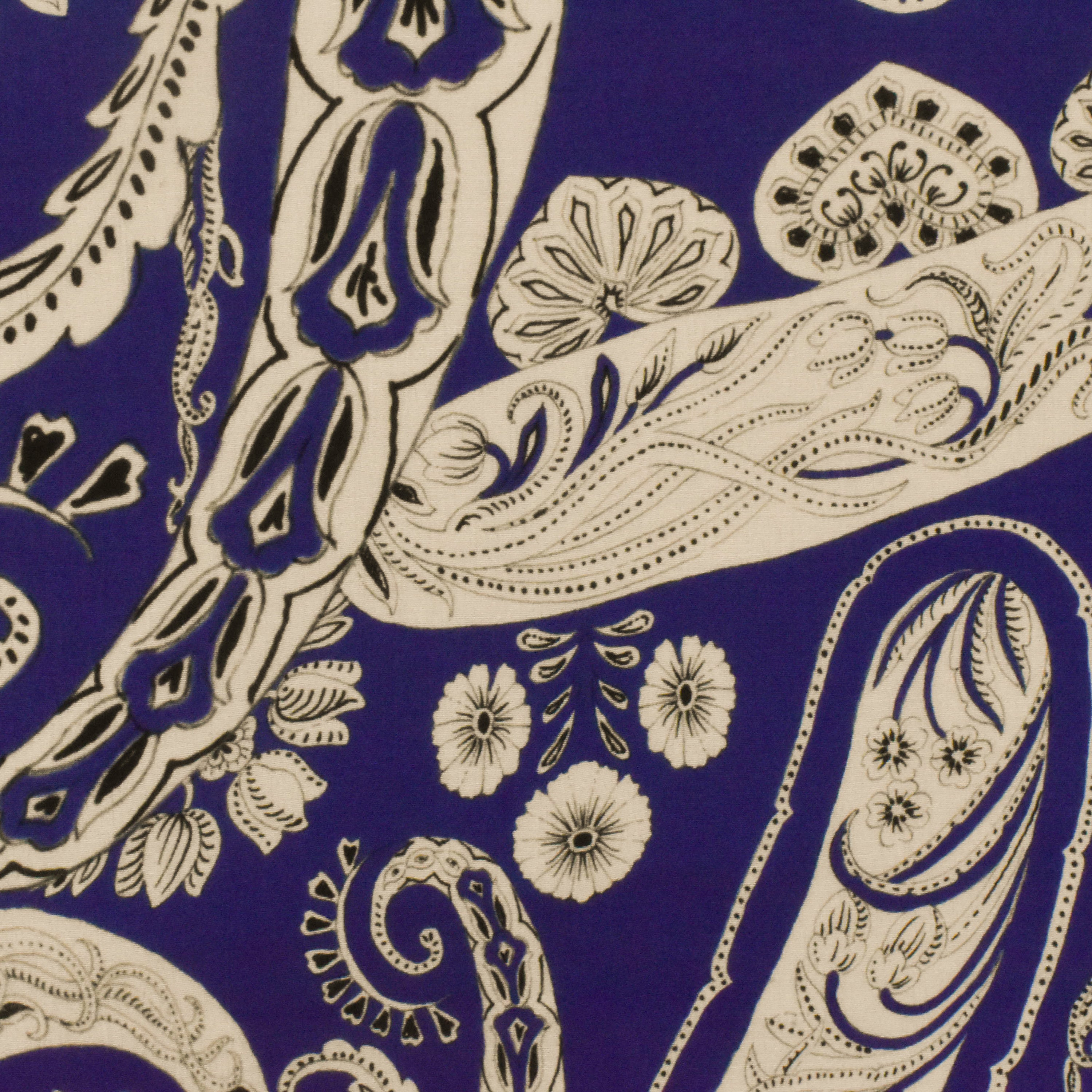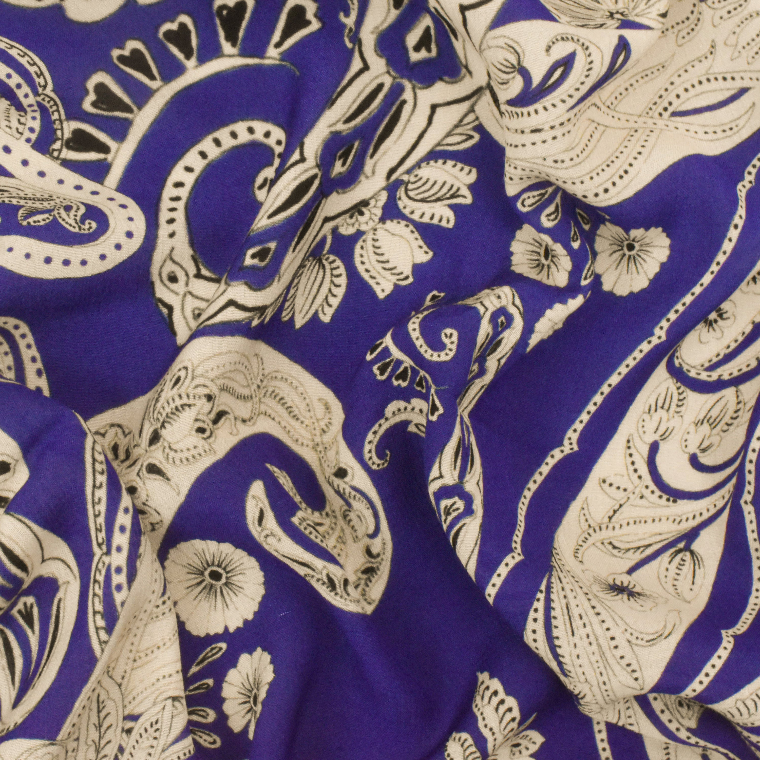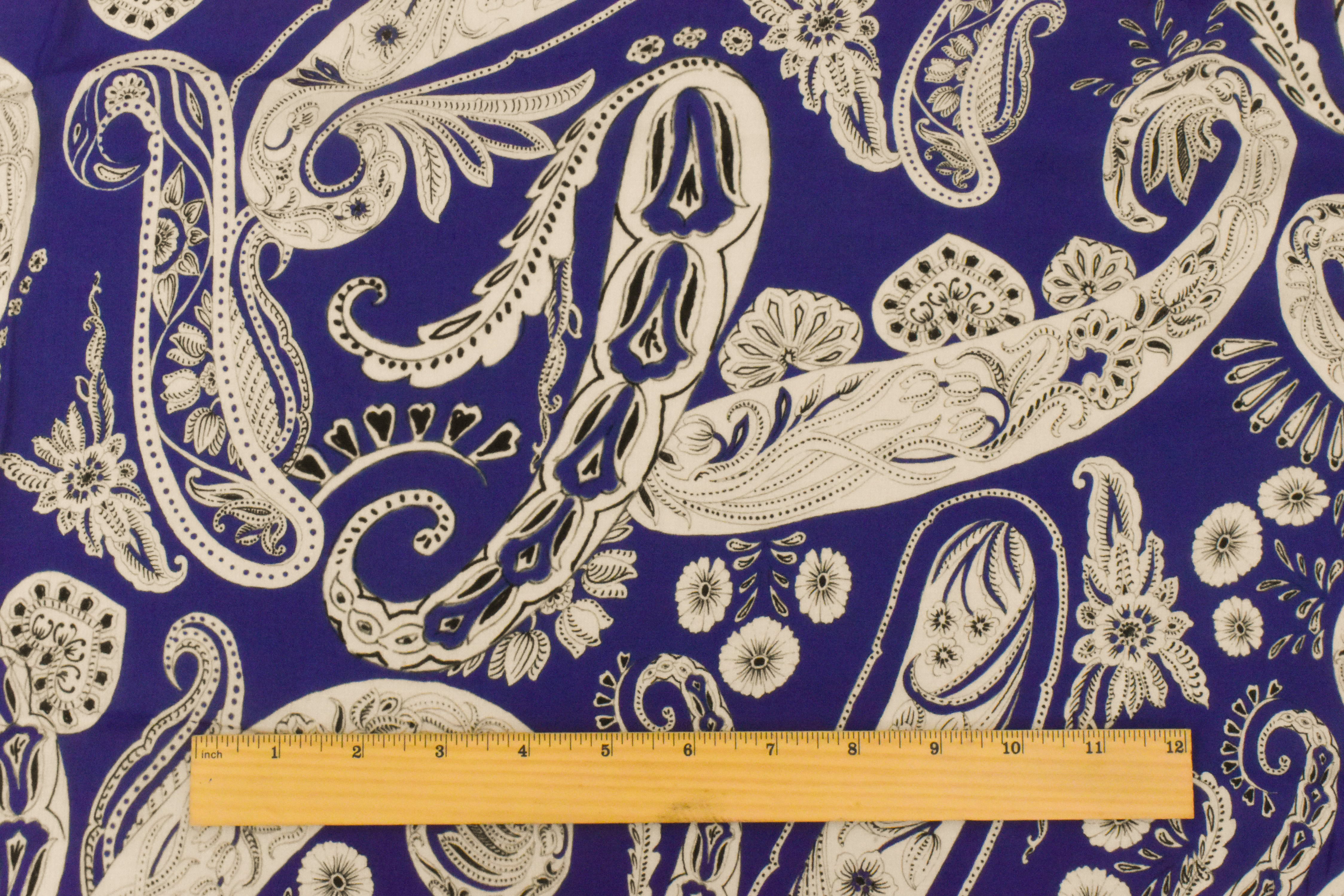 Purple-Black-Ivory Famous Designer Paisley Print Viscose Voile Woven Fabric