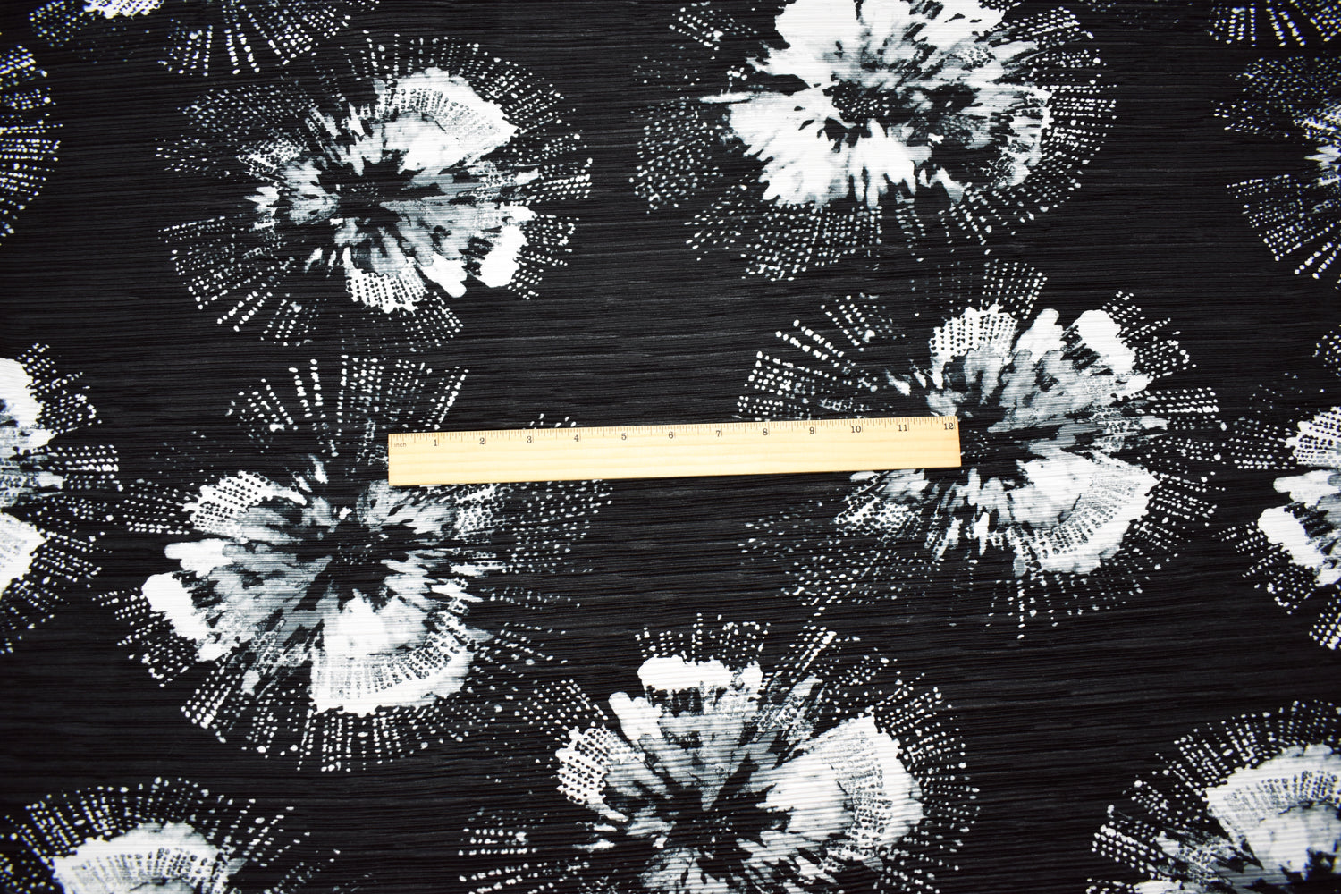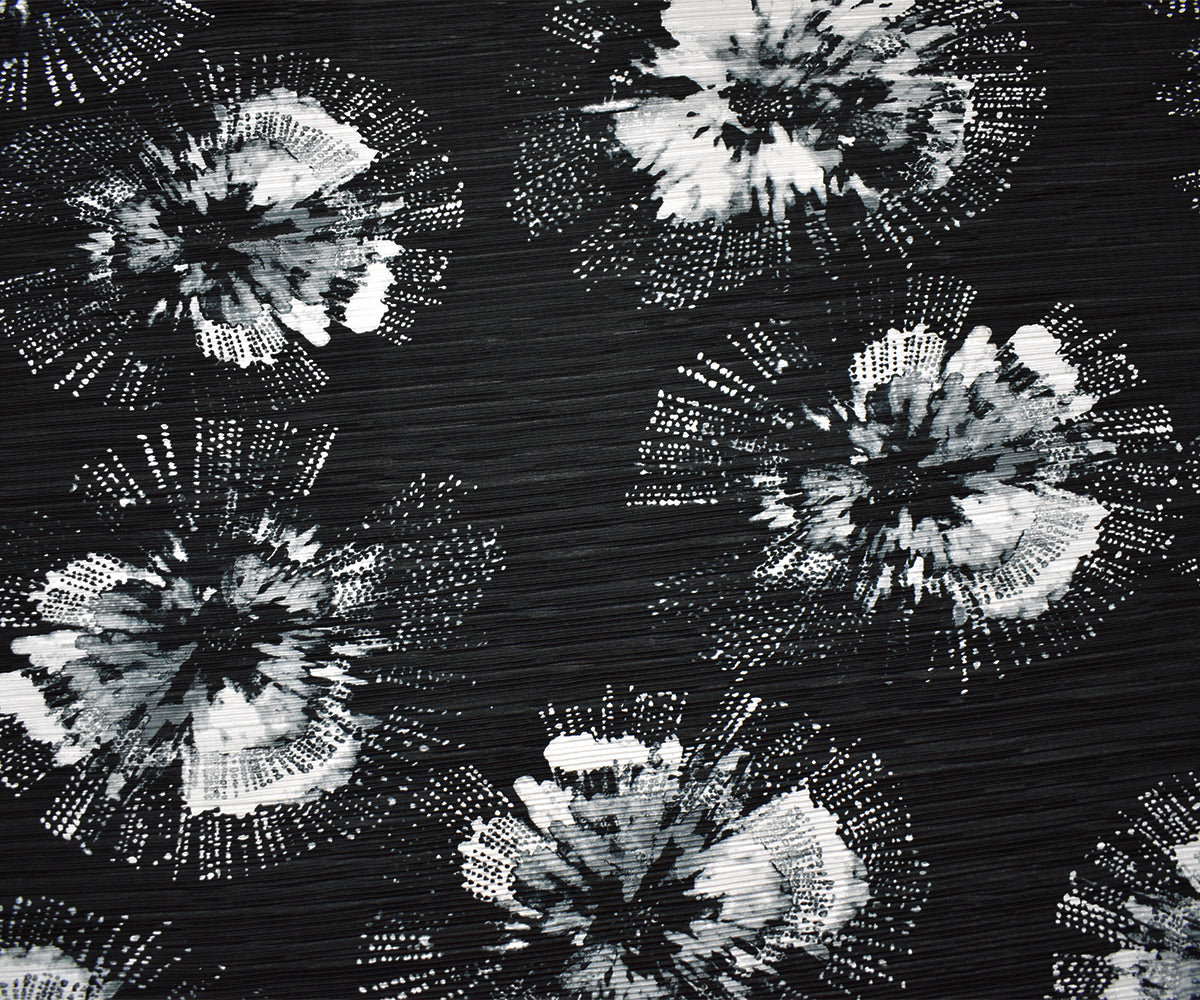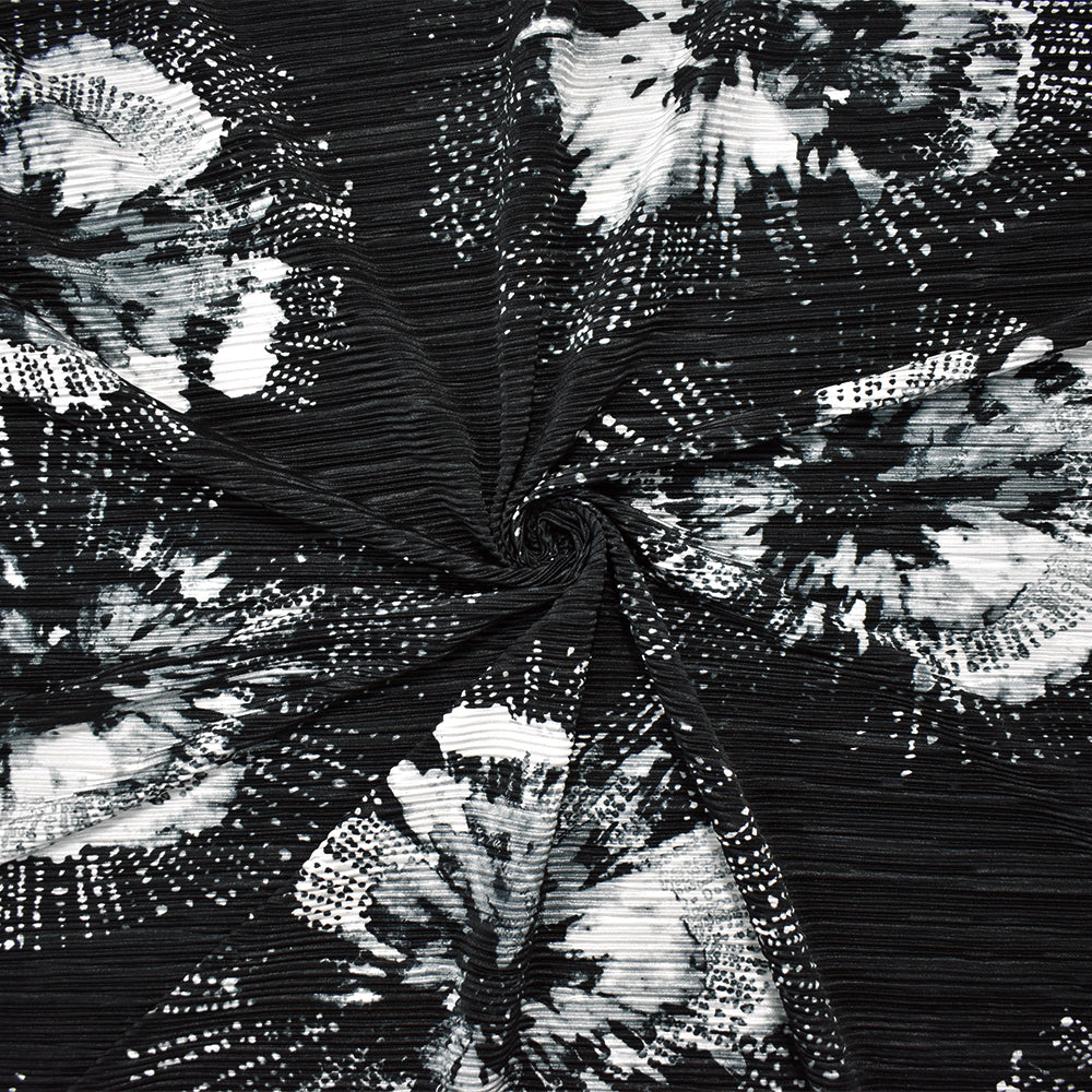 Black-Multi Poly Stretch Spandex Floral Print Pleated Interlock Knit Fabric