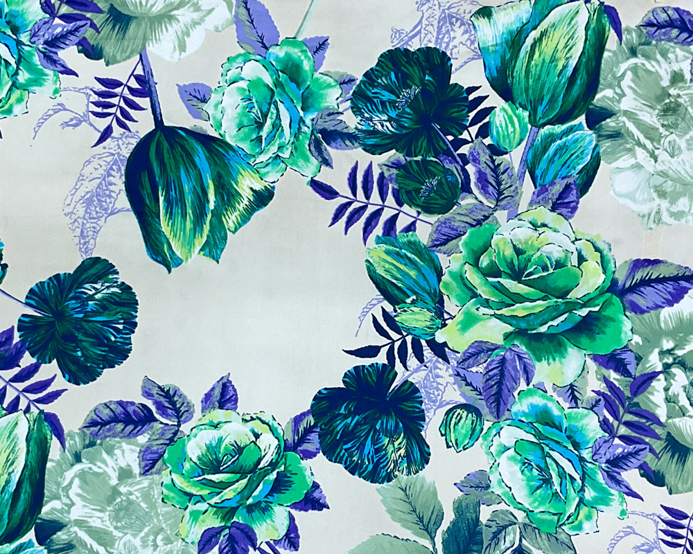 -Green-Turquoise-Multi Poly Floral Printed Charmeuse Satin Woven Fabric