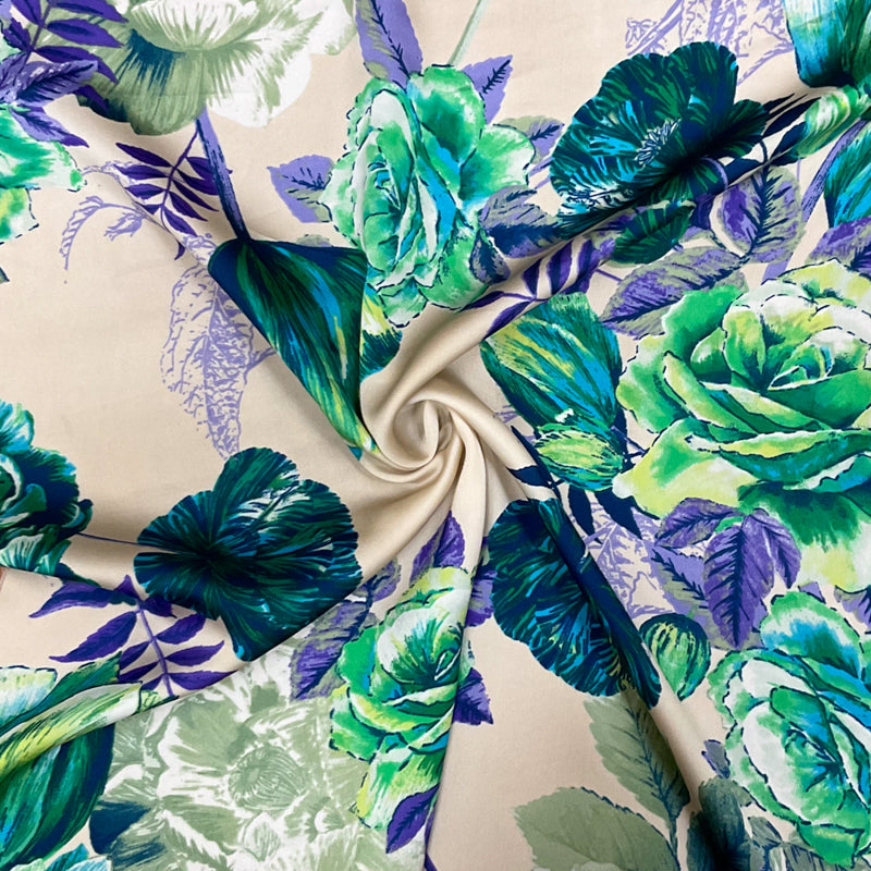 Green-Multi Poly Floral Printed Charmeuse Satin Woven Fabric