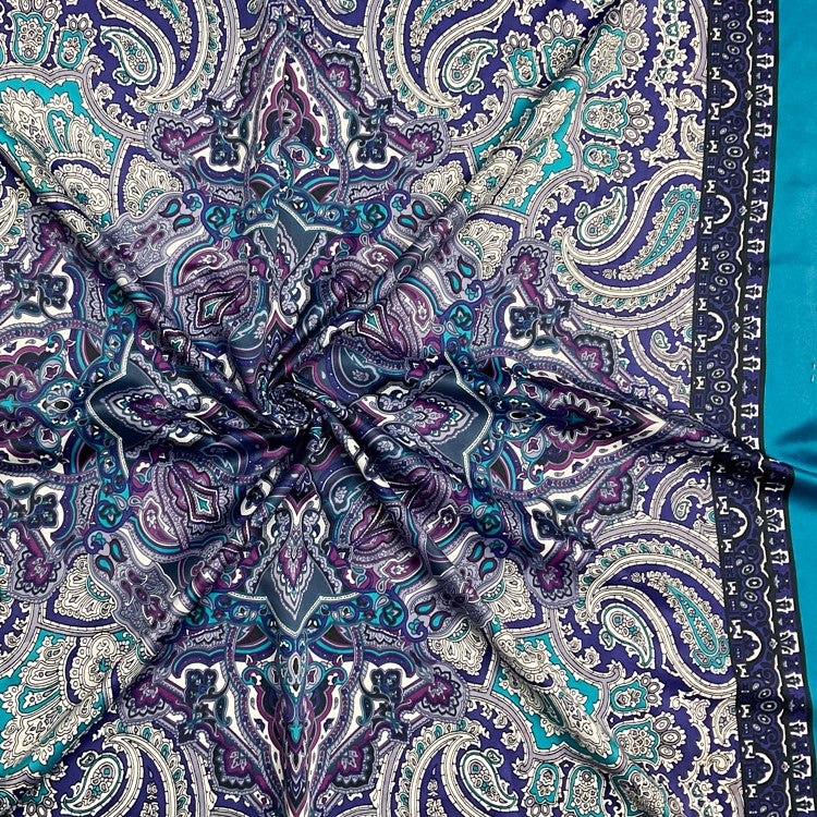 Turquoise-Purple-Multi Poly Paisley Bandana PANEL Printed Charmeuse Woven Fabric