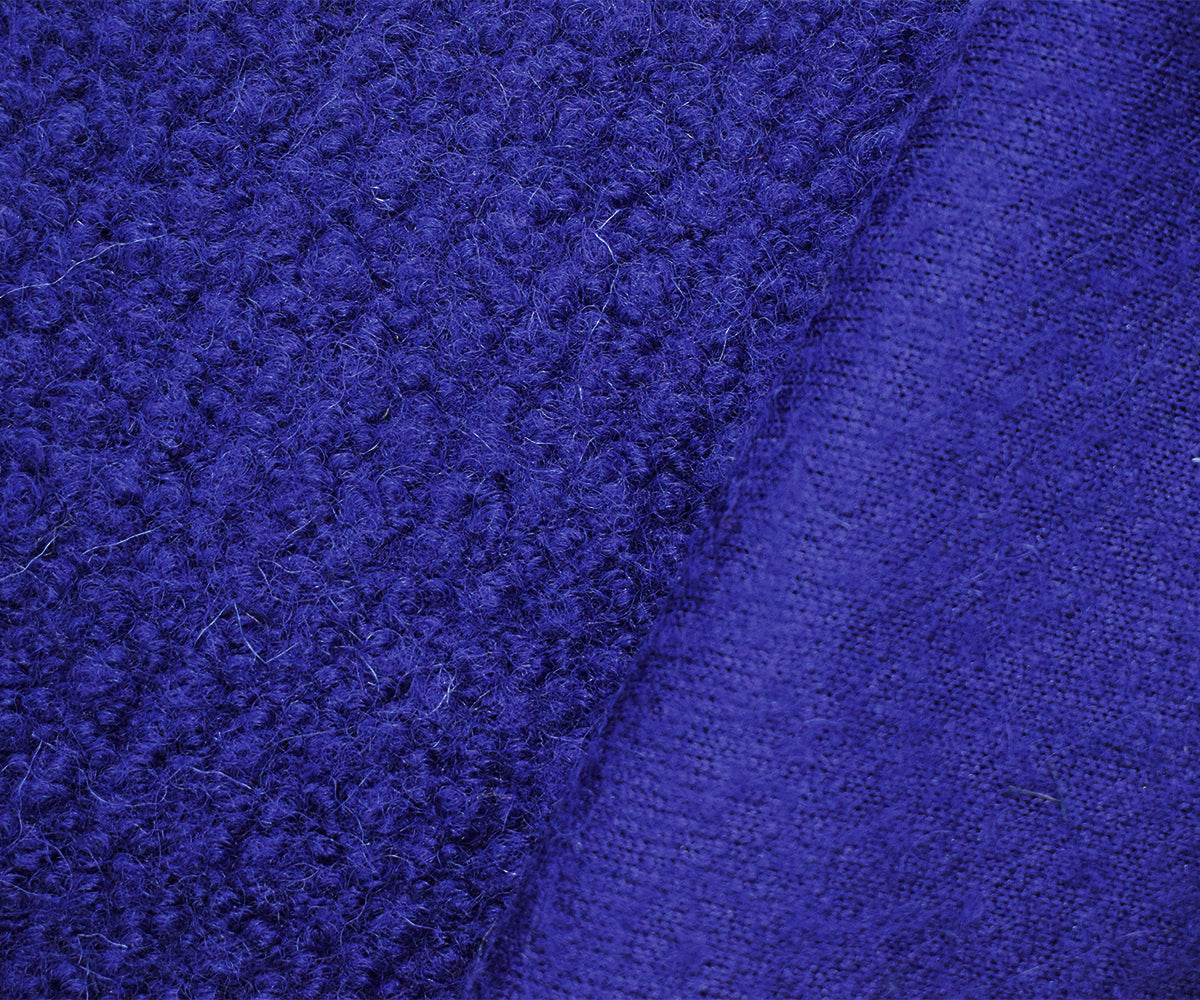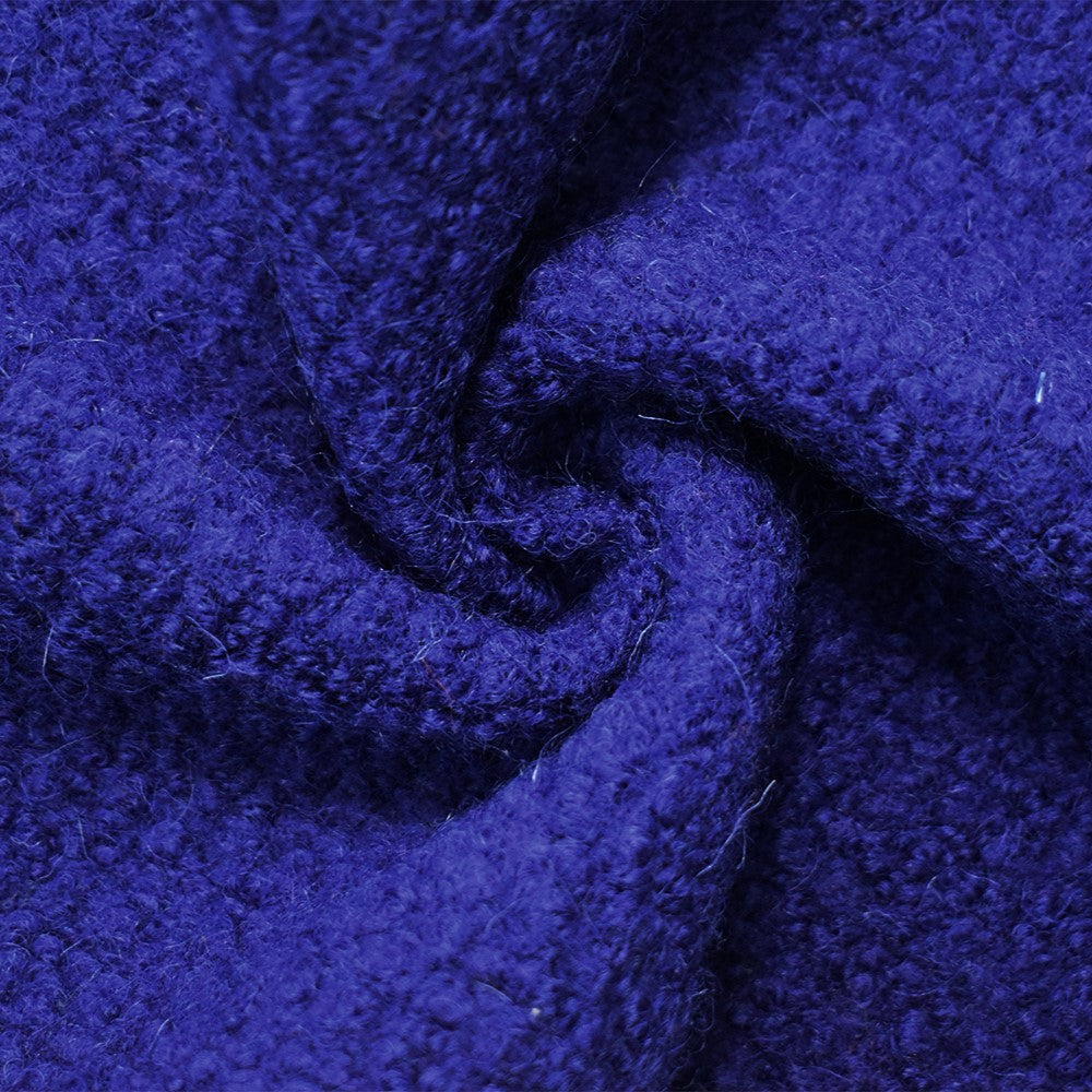 Cobalt Blue Wool-Poly Boucle Knit Fabric
