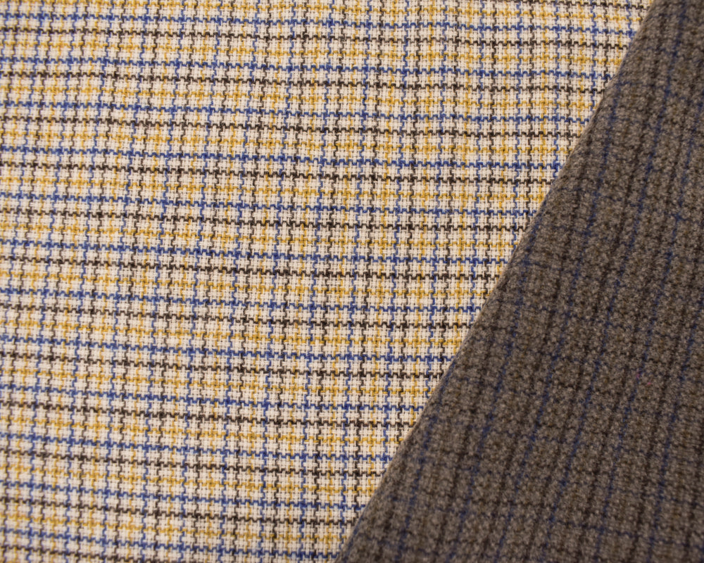 -Gray-Blue-Multi Wool Blend Plaid Twill Jacketing Woven Fabric