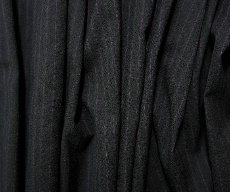 -This fabric showcases a subtle black-purple stripe achieved through a dobby weave, adding a textured surface interest.