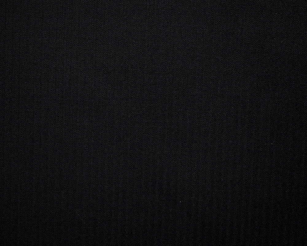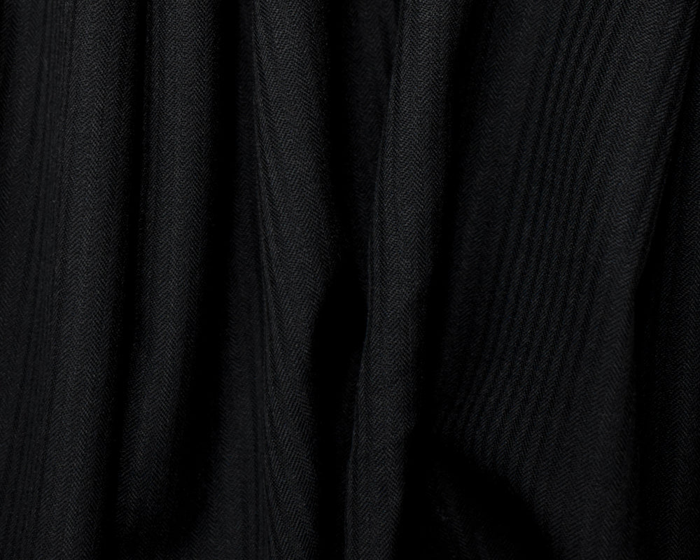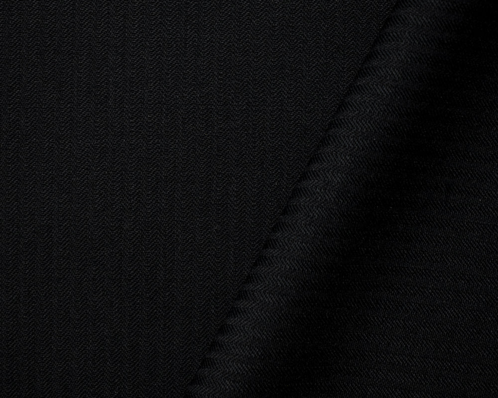 -Crafted in a solid black, this wool-poly fabric features a elegant herringbone twill weave for subtle visual interest. It provides a sophisticated and versatile option for formal shirting.