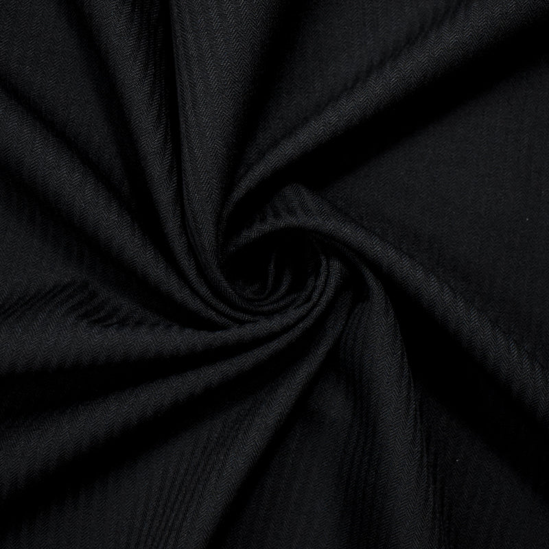 Black Wool Poly Herringbone Twill Woven Shirting Fabric