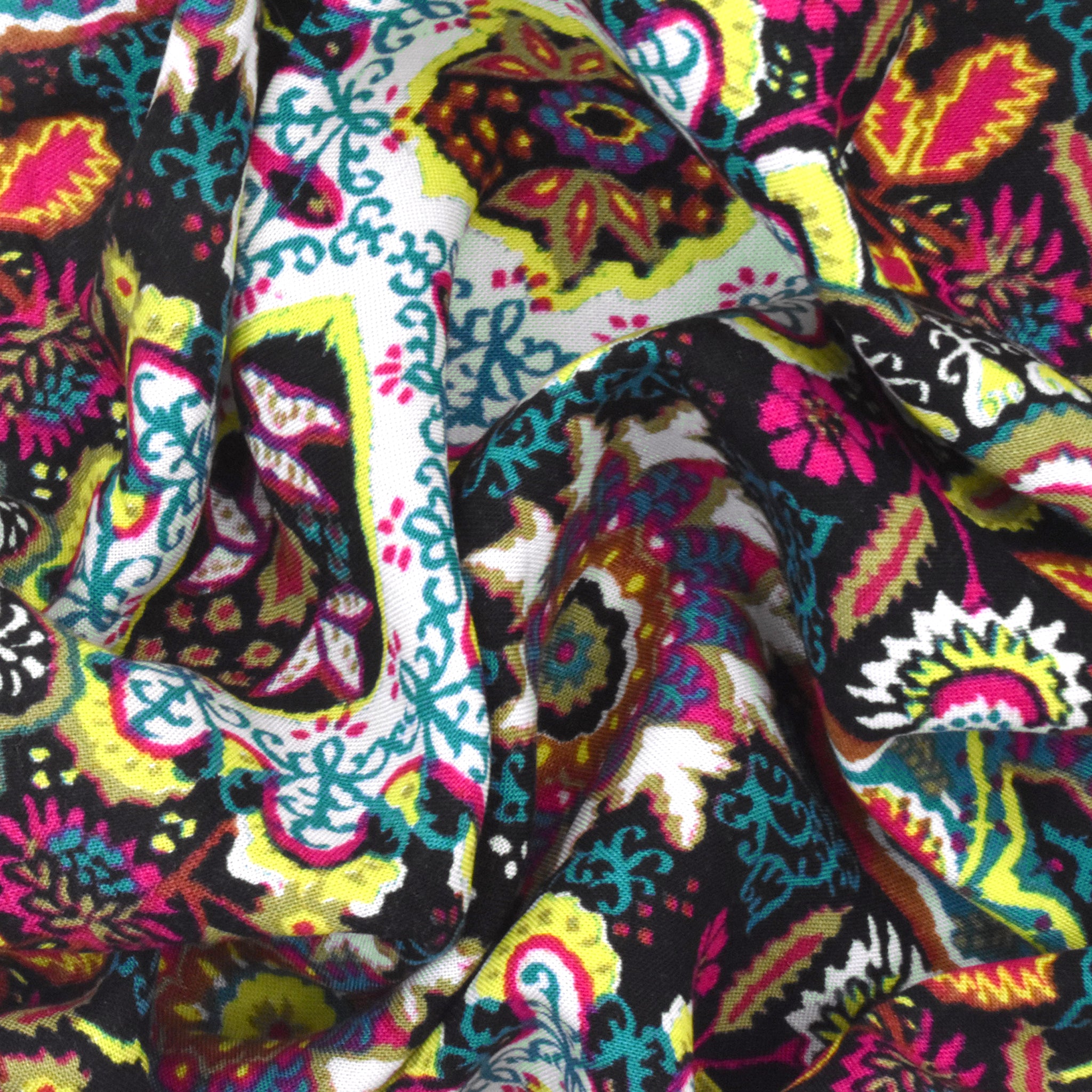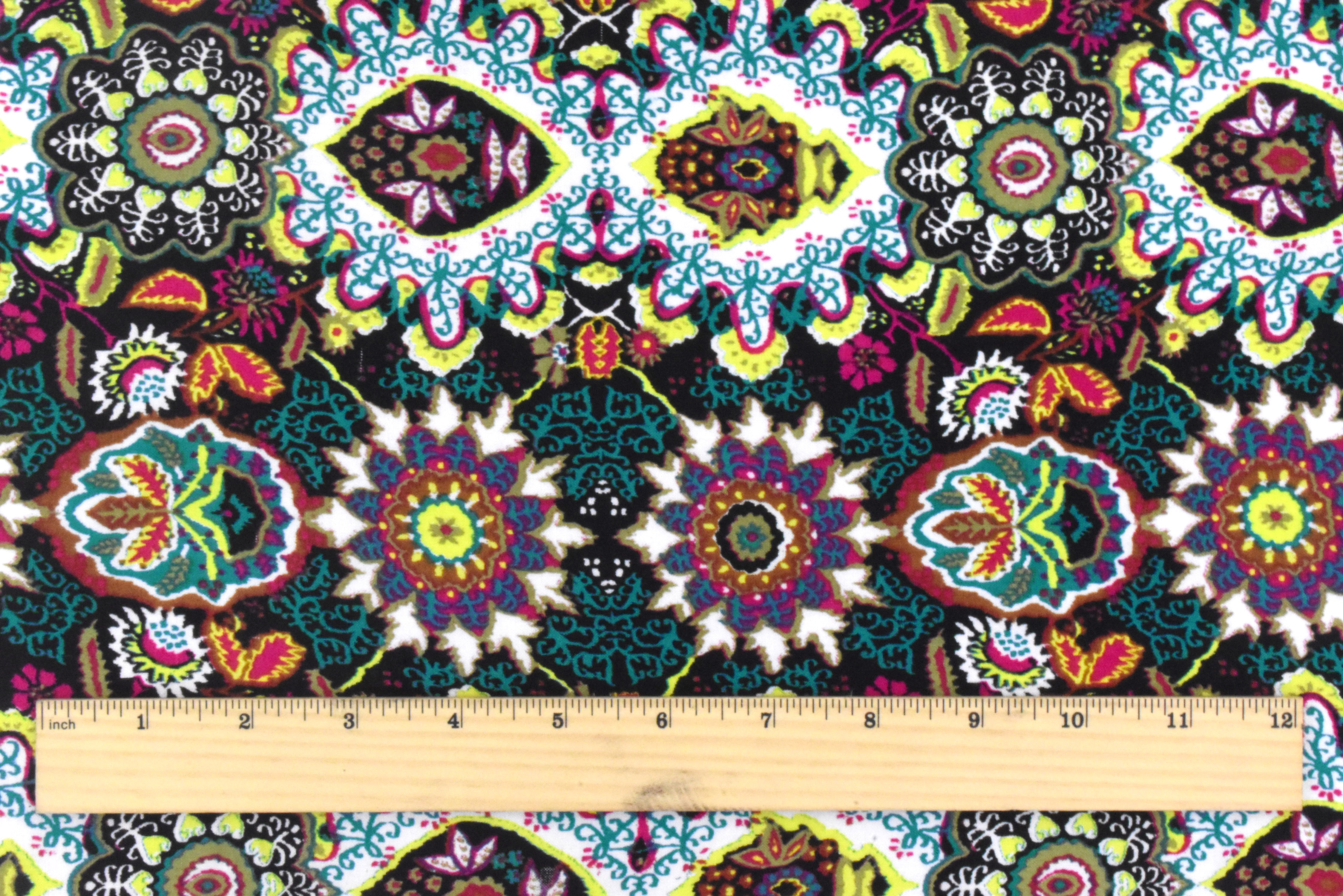 Black-Lime-Multi Kaleidoscope Floral Printed Woven Fabric