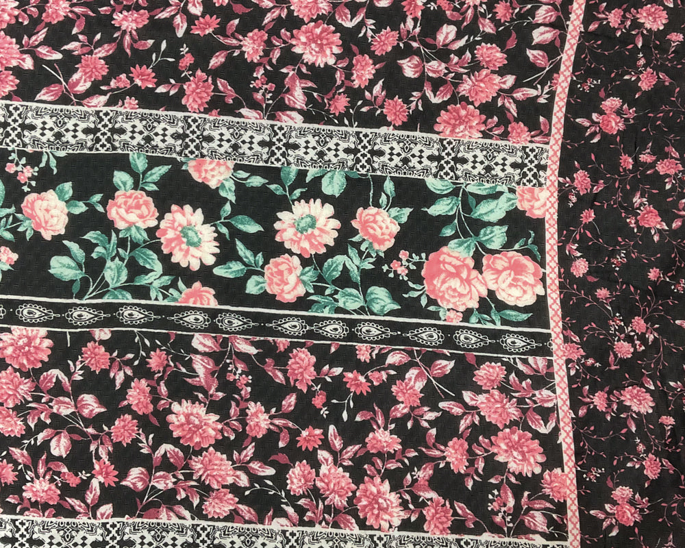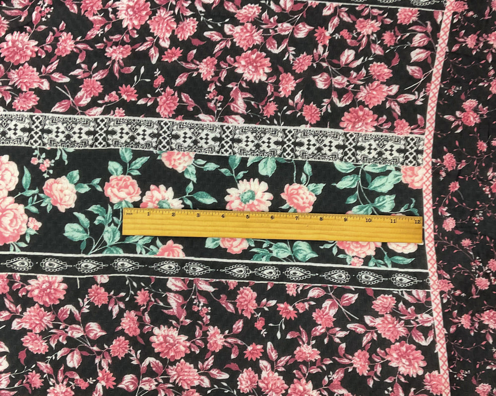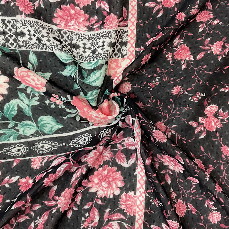 Black-Multi Poly Floral Border Printed Dobby Chiffon Woven Fabric