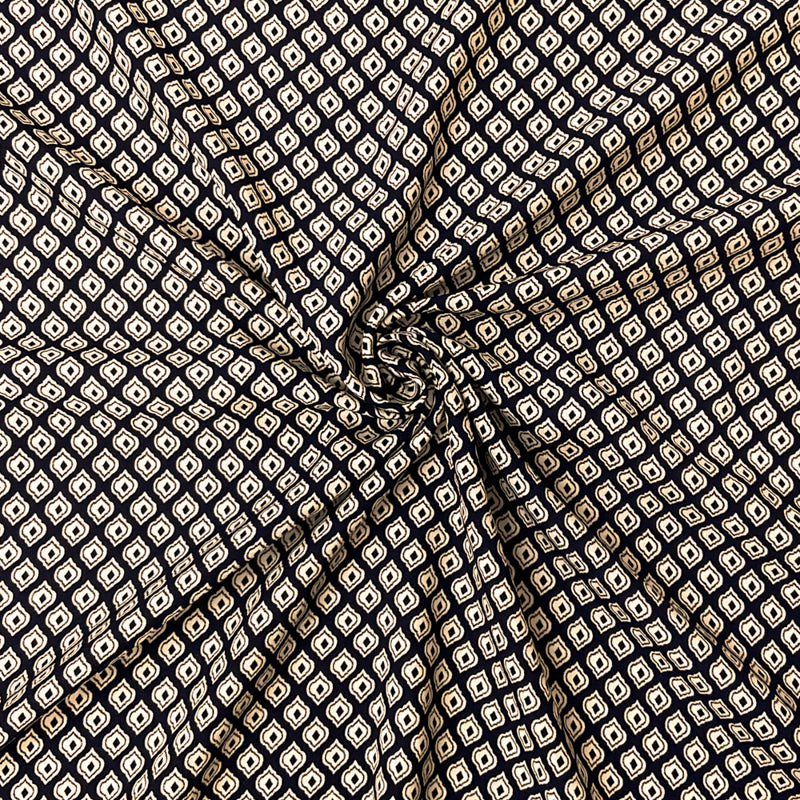 Blue-Brown Poly-Rayon Ogee Printed Challis Woven Fabric