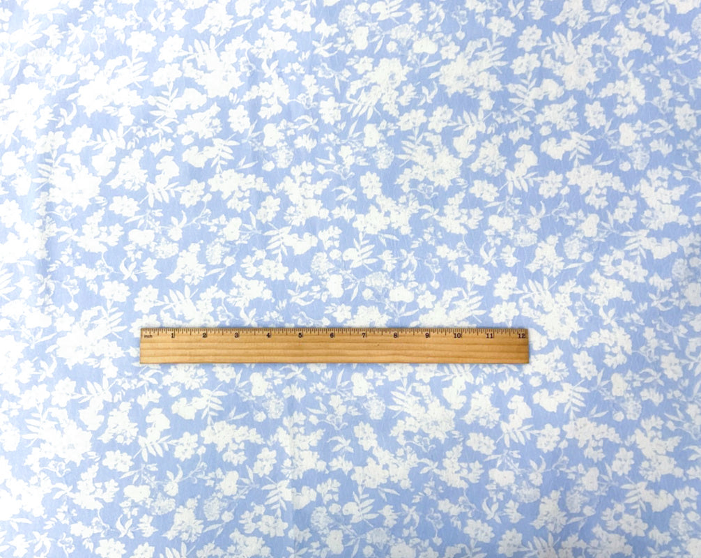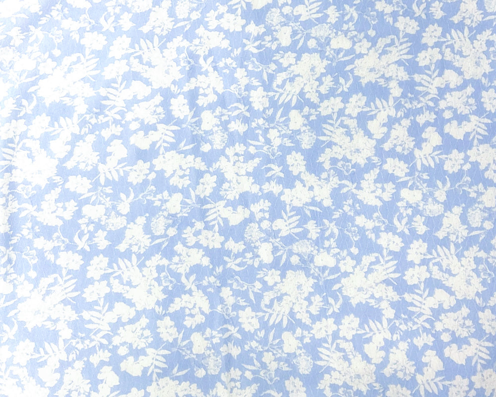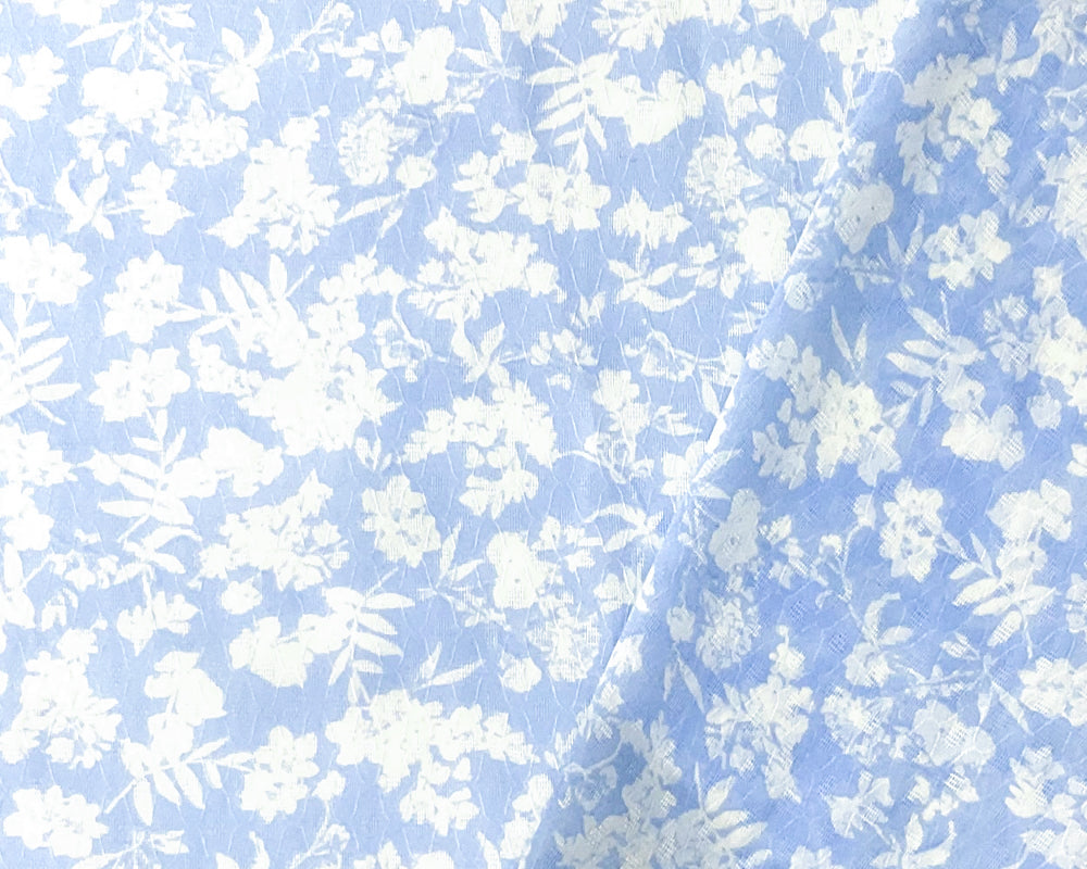 Blue-Ivory Poly Floral Printed Ogee Dobby Chiffon Woven Fabric