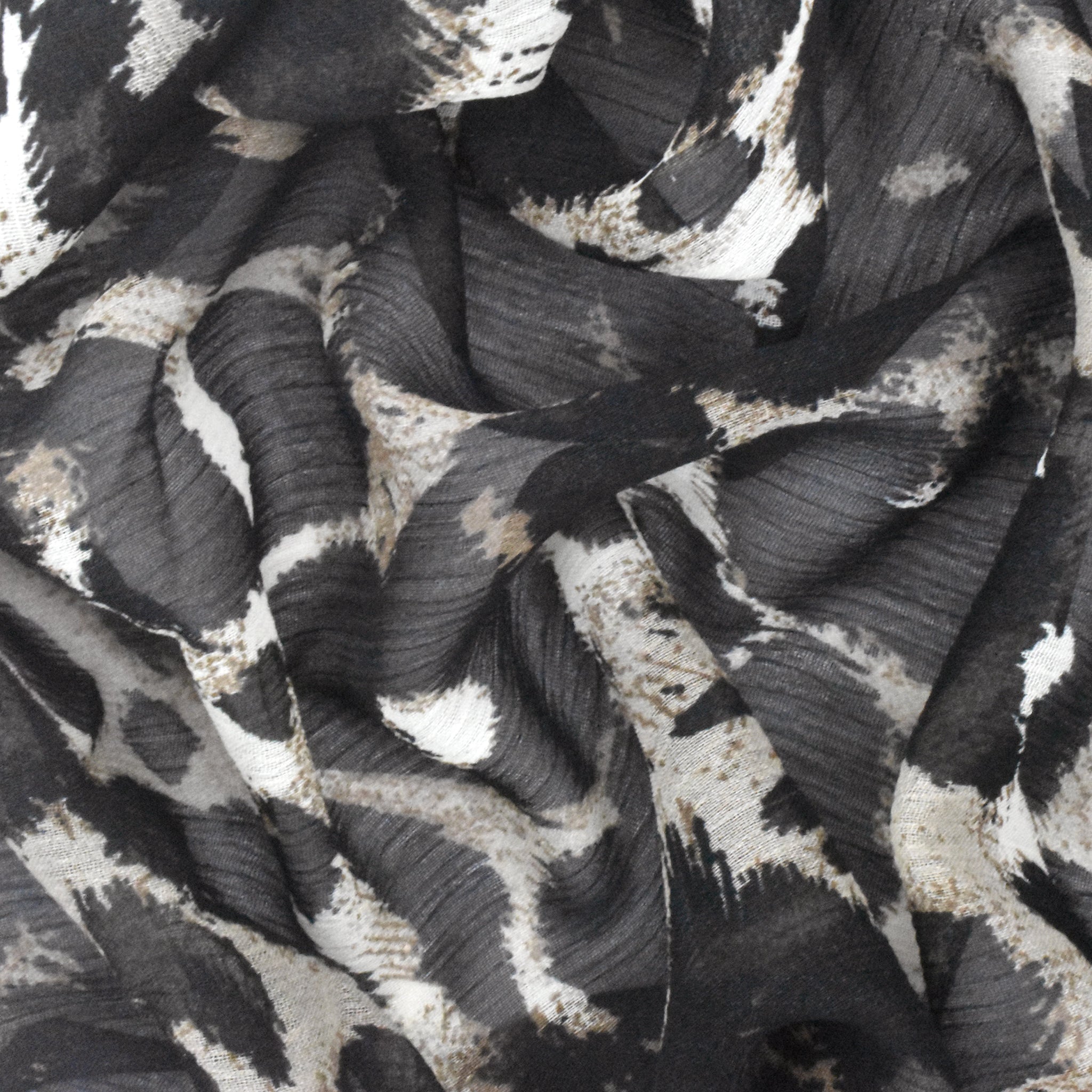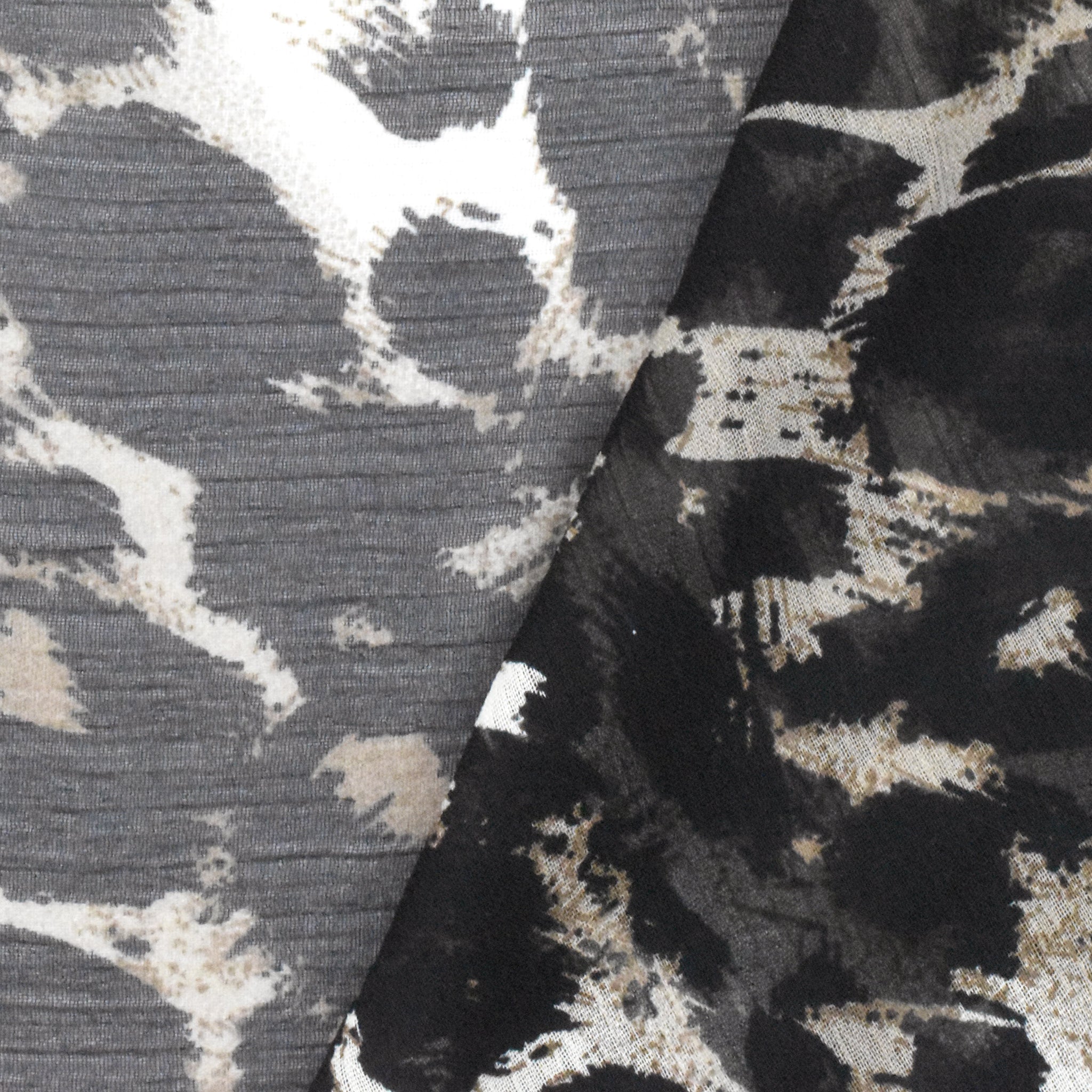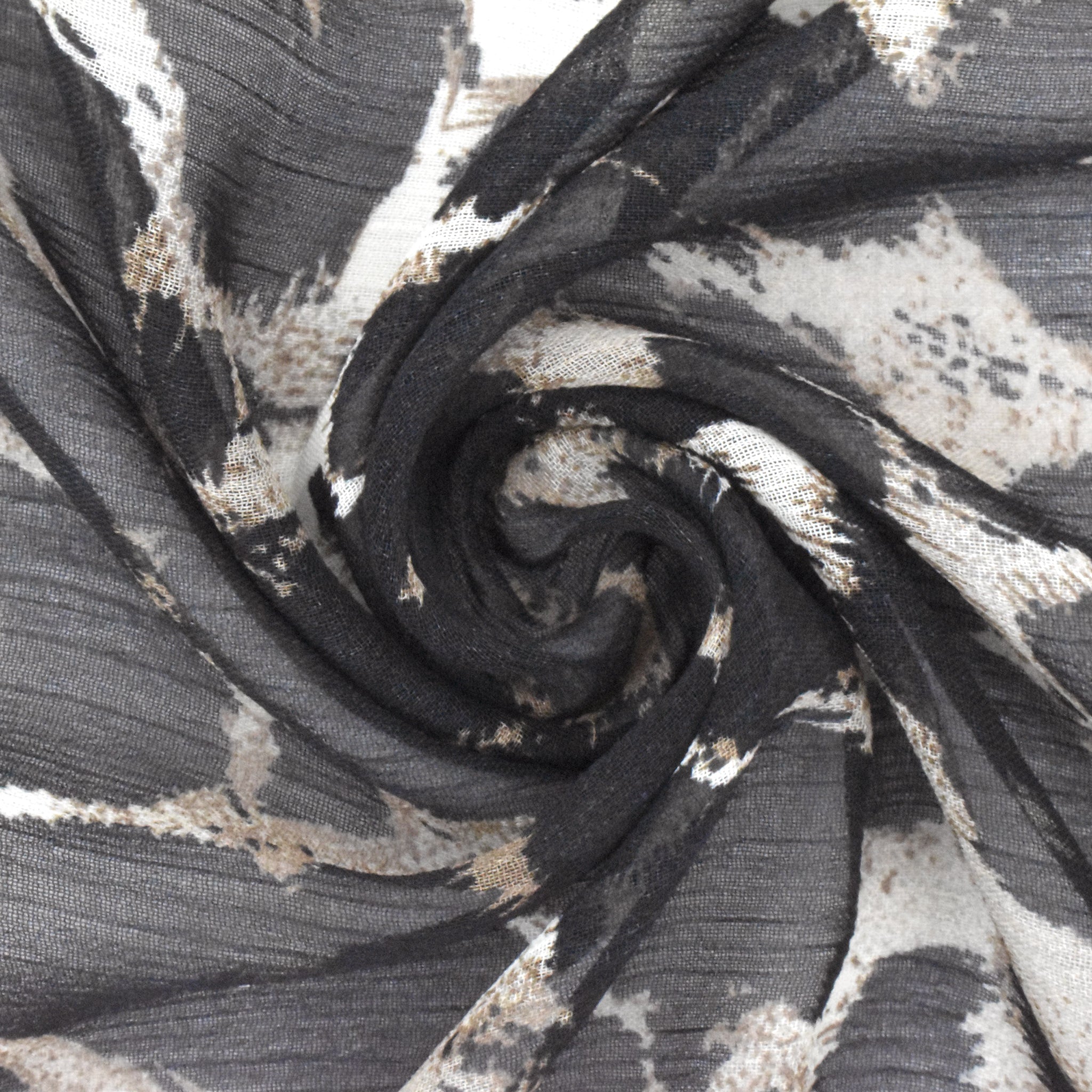 Classic Black-Beige-Multi Abstract Cheetah Printed Poly Yoryu Woven Fabric