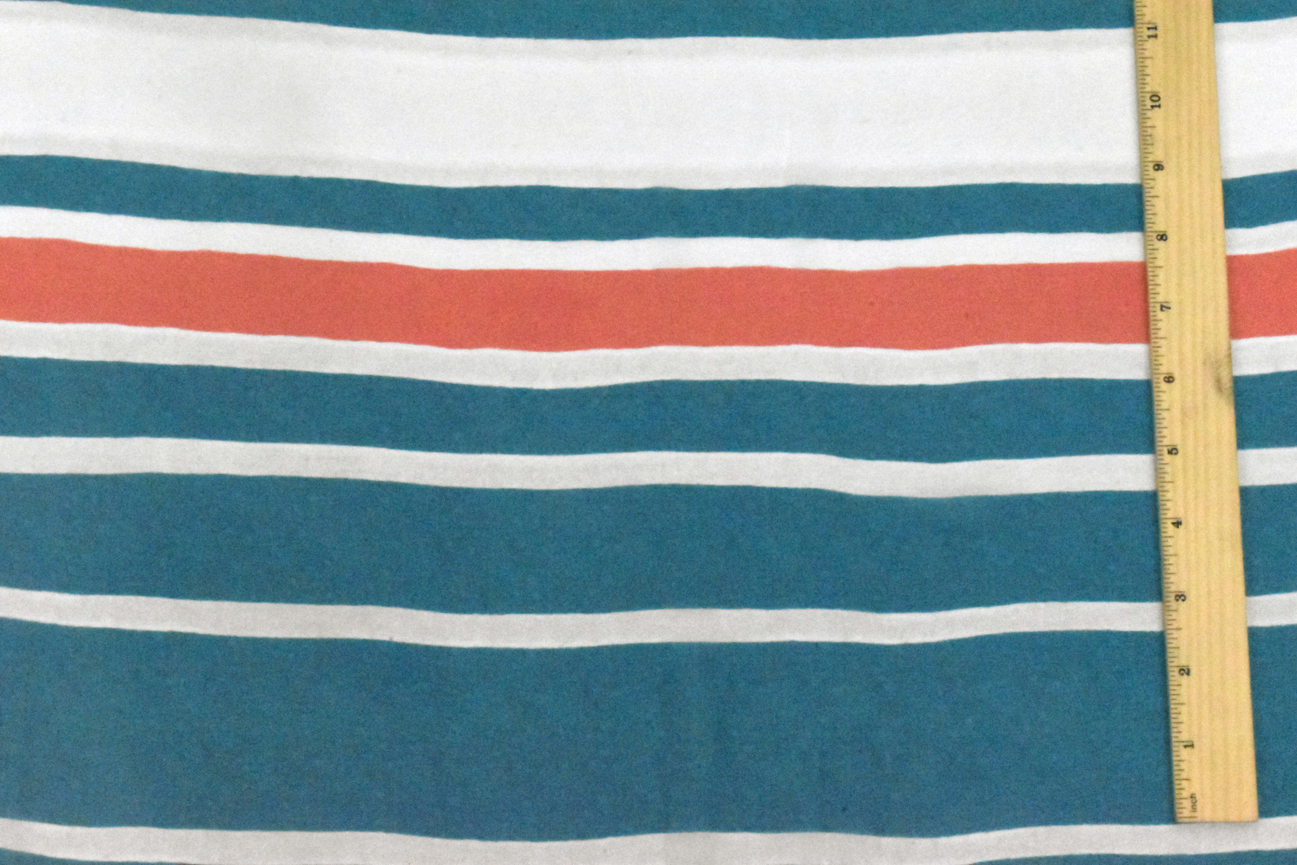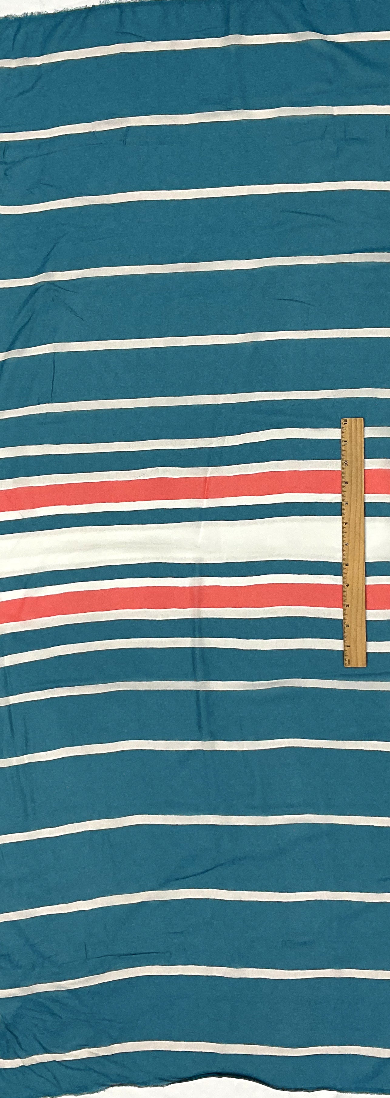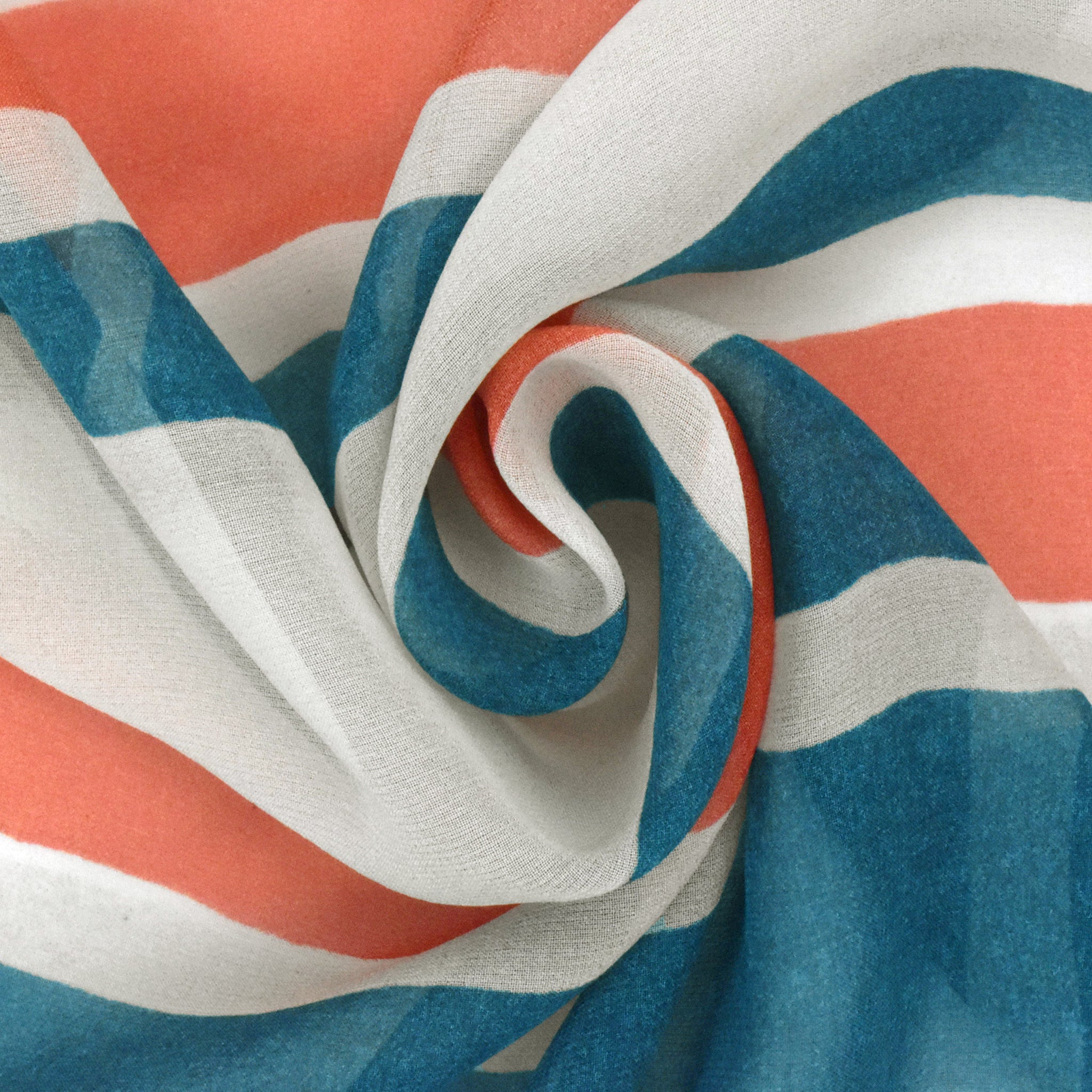 Ocean Teal-Red-Ivory Stripe Printed Silk Chiffon Fabric