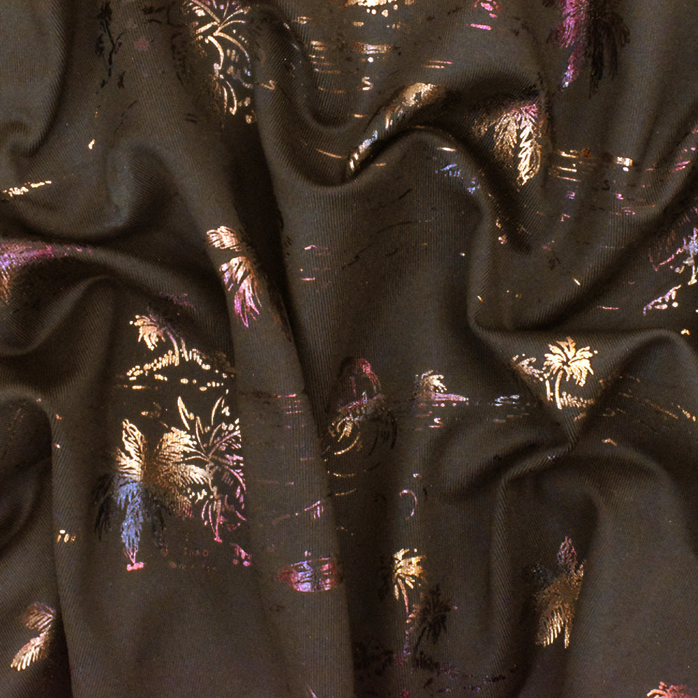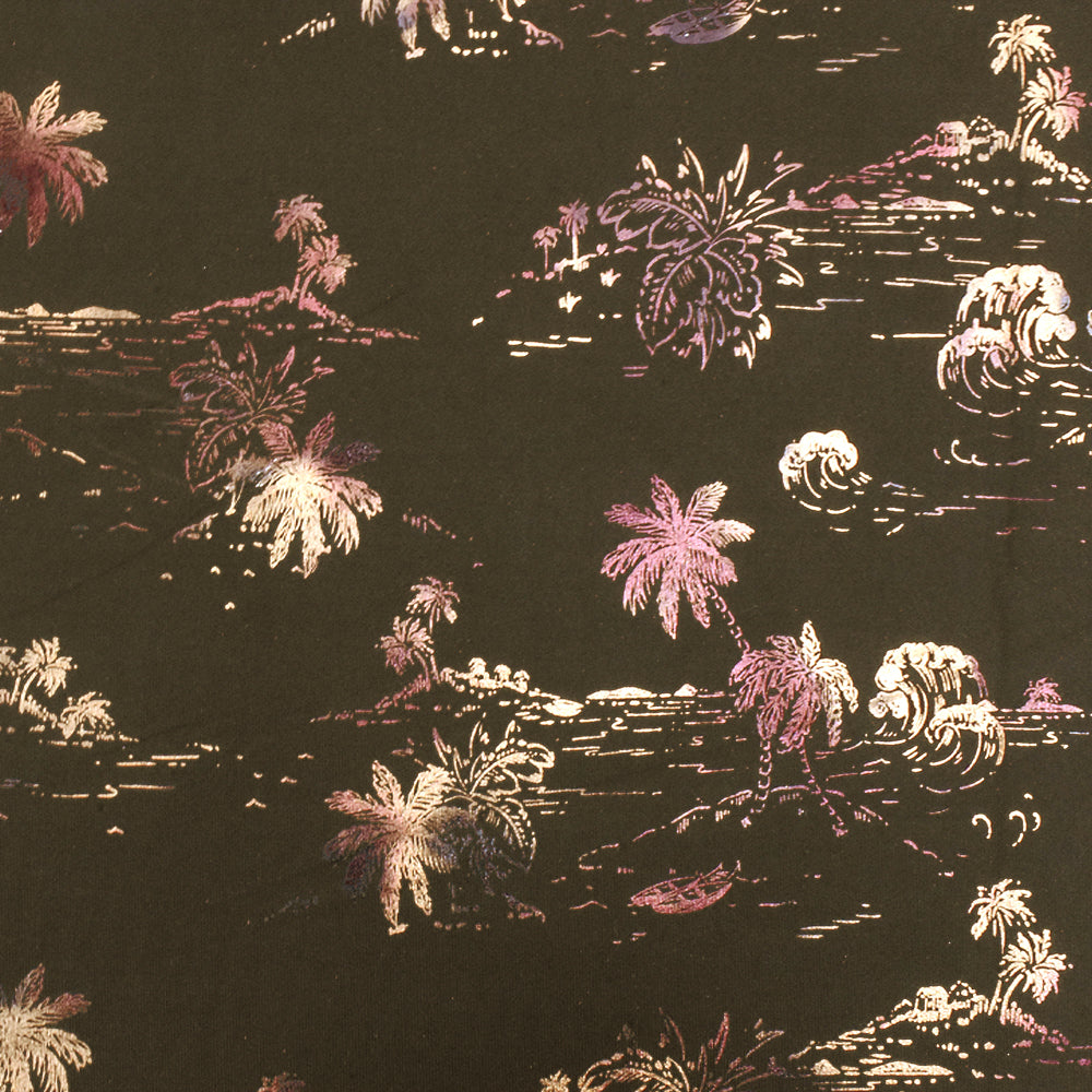 -Beach view pattern foil printed on a stretch tricot yoga swimwear knit fabric from a famous yoga wear company