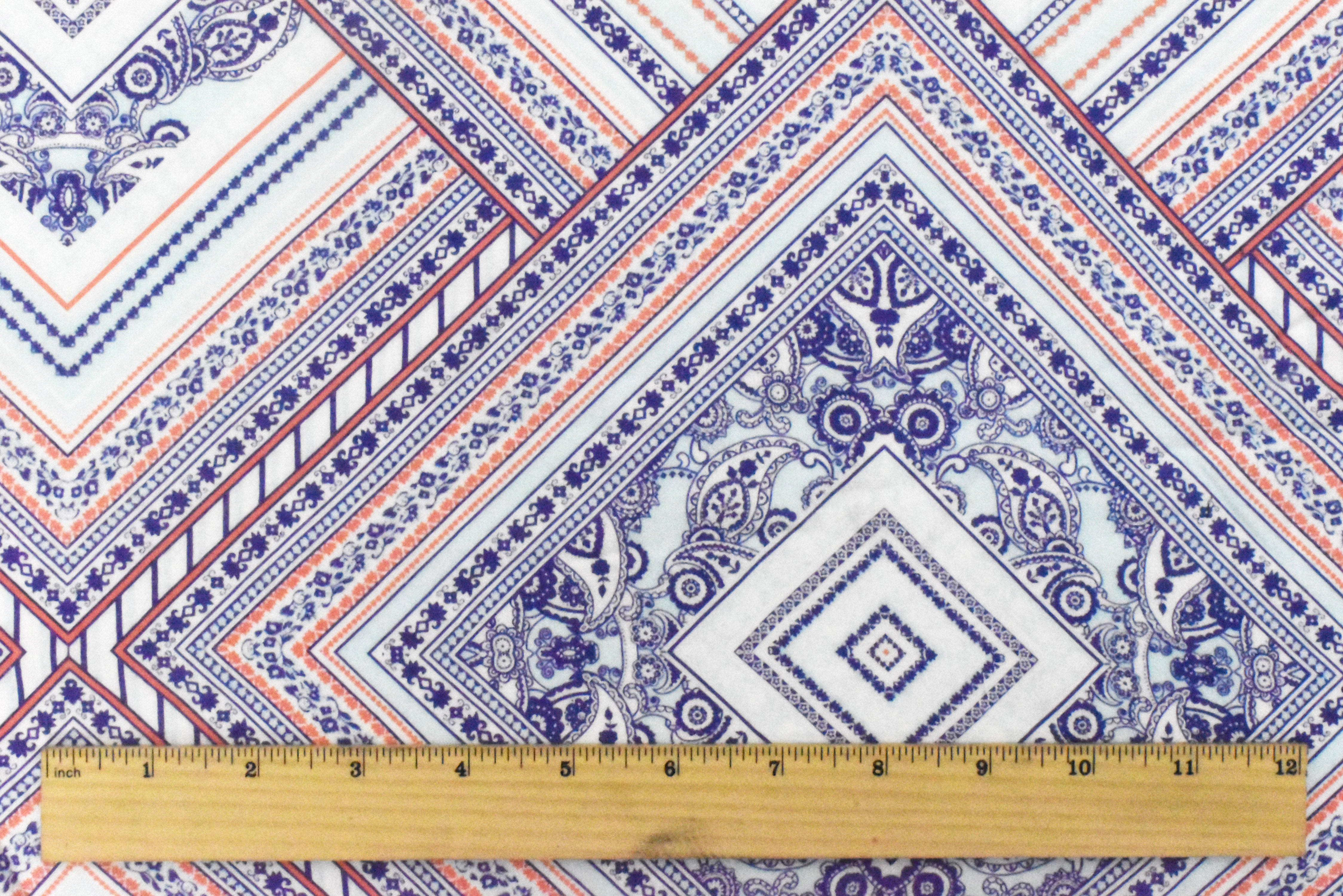 1 1/4 YD PC-Soft Blue-Purple-Multi Geometric With Paisley Printed Challis Woven Fabric