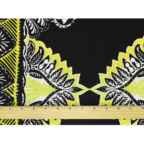 1 1/8 YD PC-Yellow/Black Abstract Baroque Print Faille Fabric