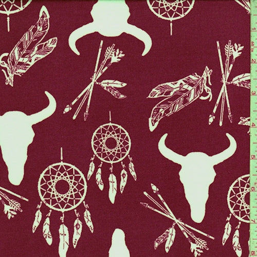 1 3/8 YD PC-Mulberry/White Dream Catcher Double Brushed Jersey Knit Fabric