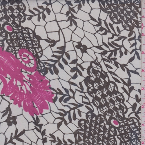 2 YD PC-Grey/Black Lace Print Silk Voile Fabric
