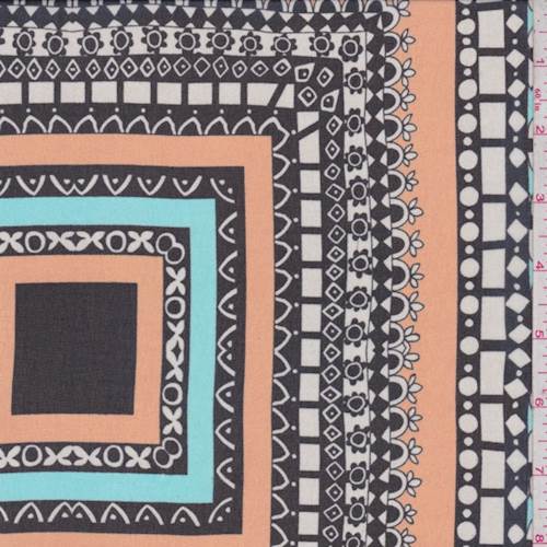 4 7/8 YD PC-Peach Morrocan Tile Chiffon Fabric