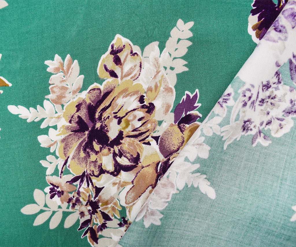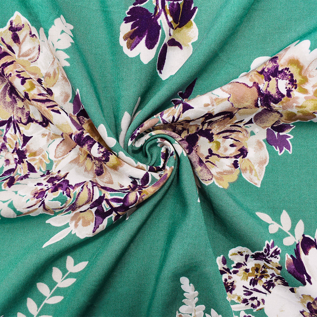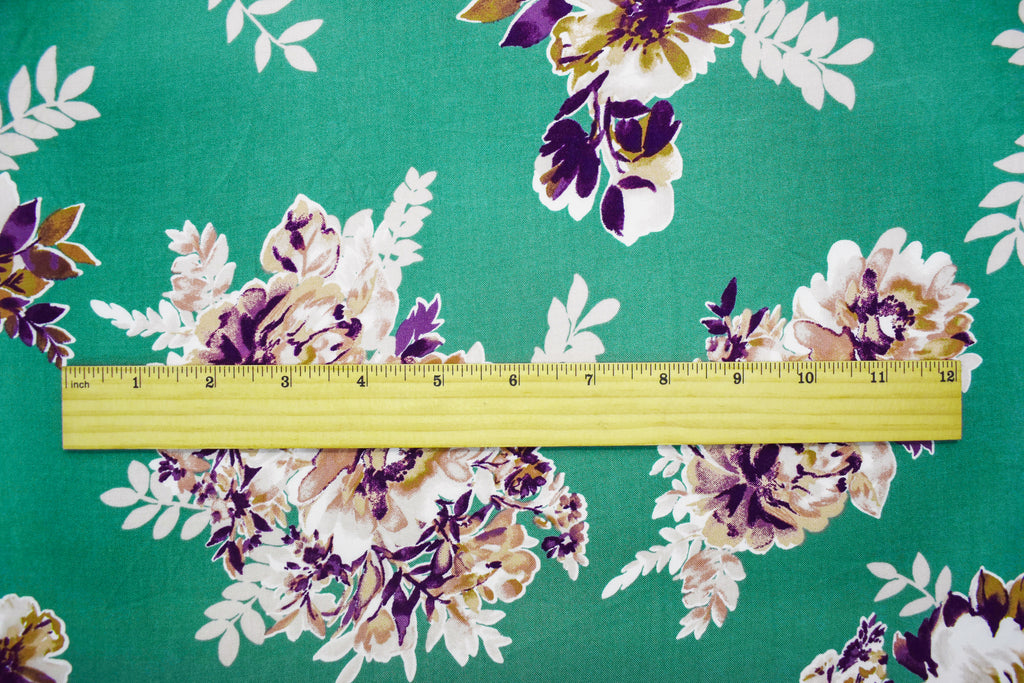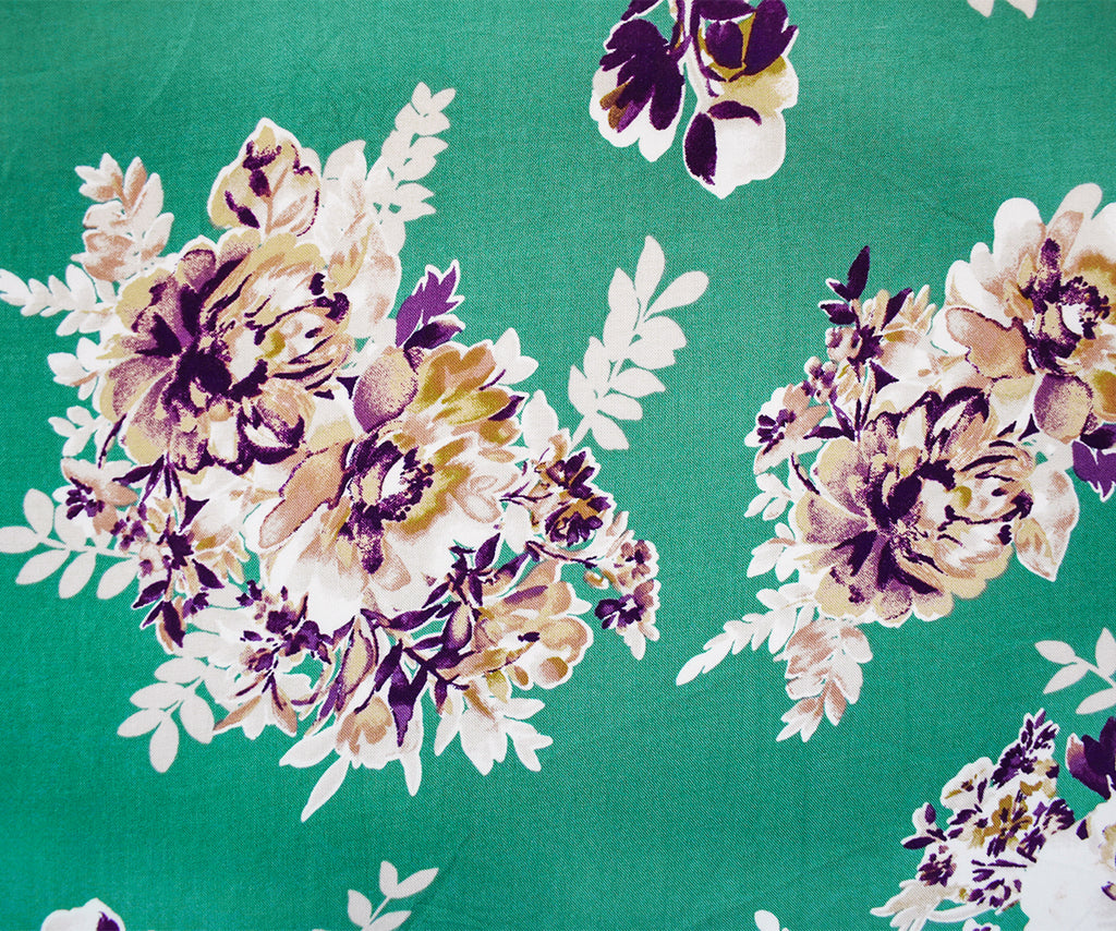 4 YD PC-Ash Green-Brown-Multi Rayon Floral Printed Challis Woven Fabric