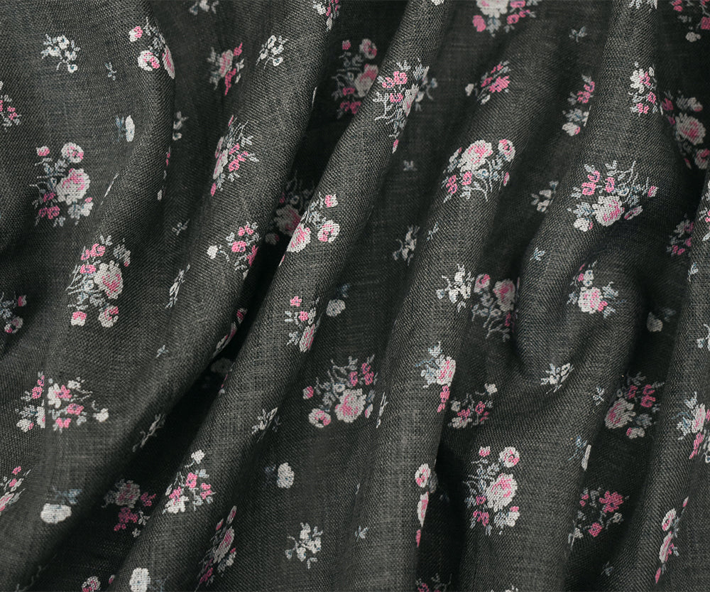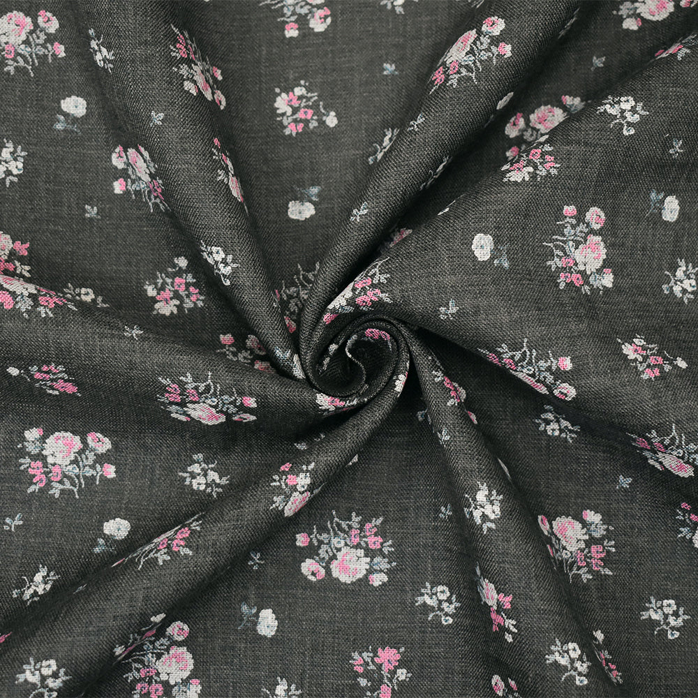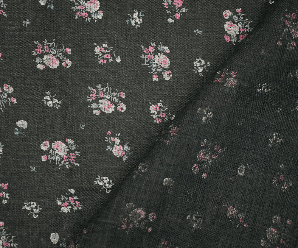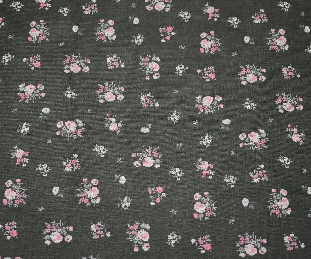 Ash Black-Pink-Multi Floral Ditsy Printed Linen Woven Fabric
