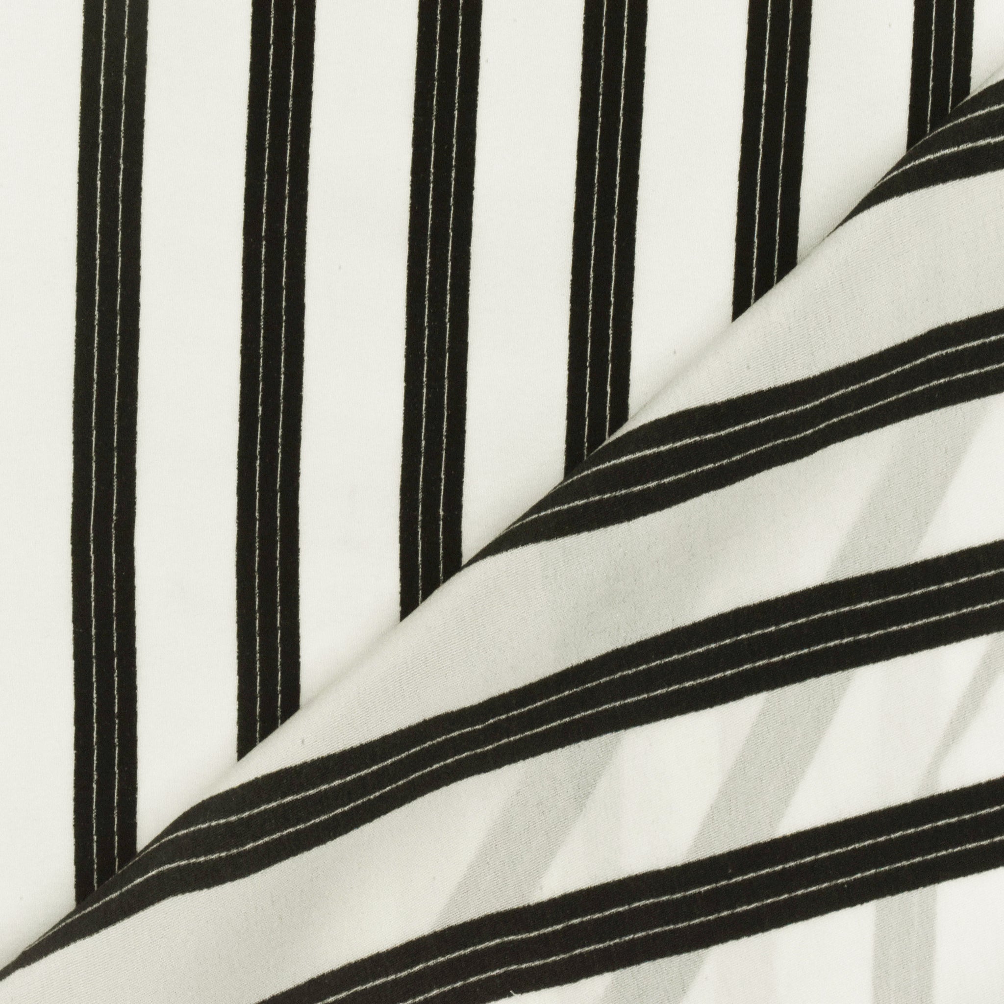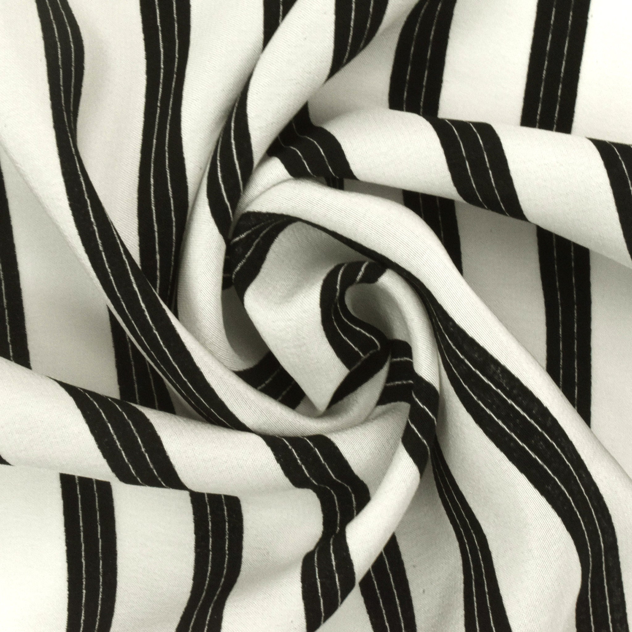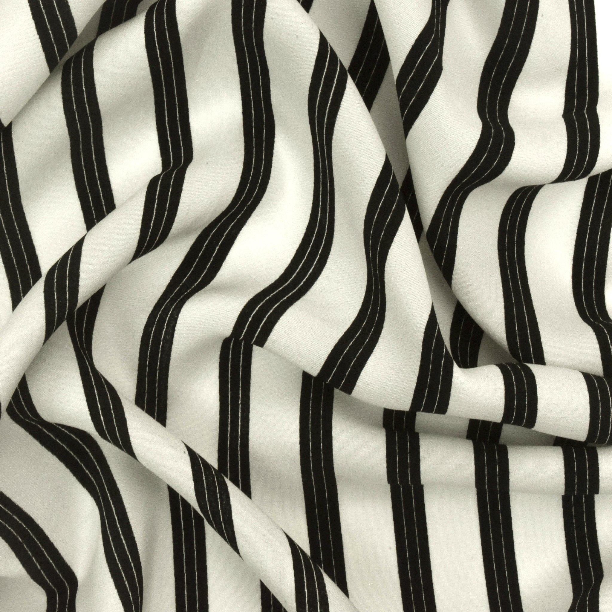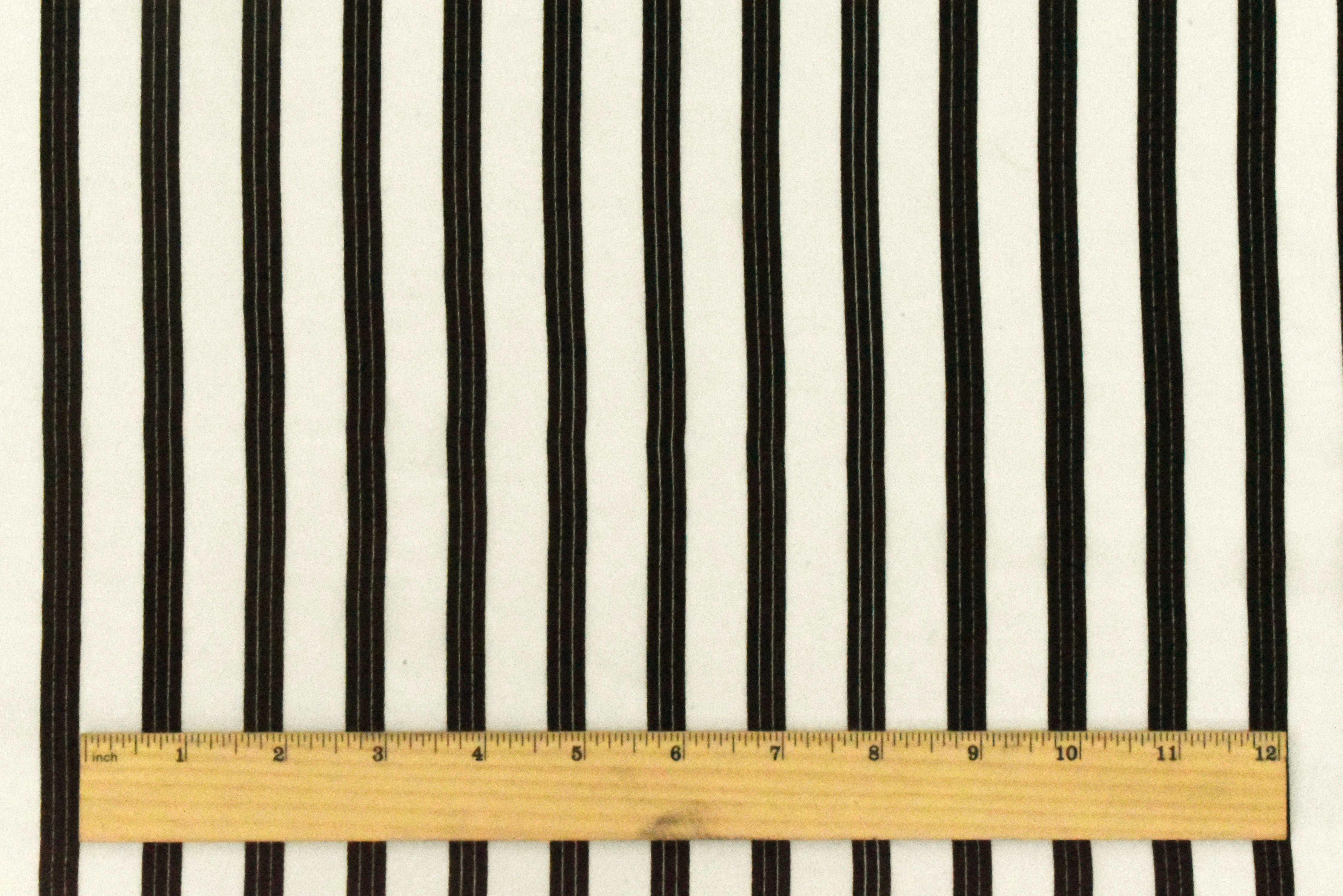 Basic Black-Ivory Stripe Printed Crepe De Chine Woven Fabric