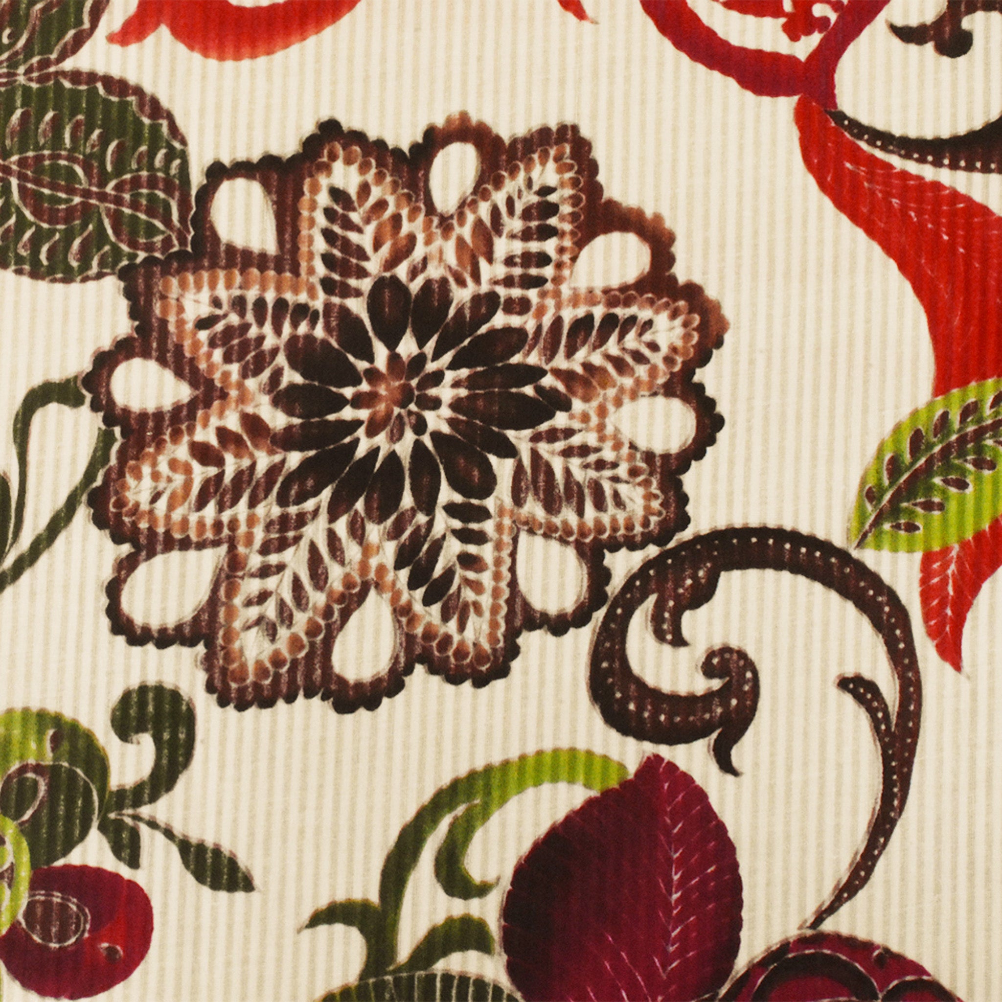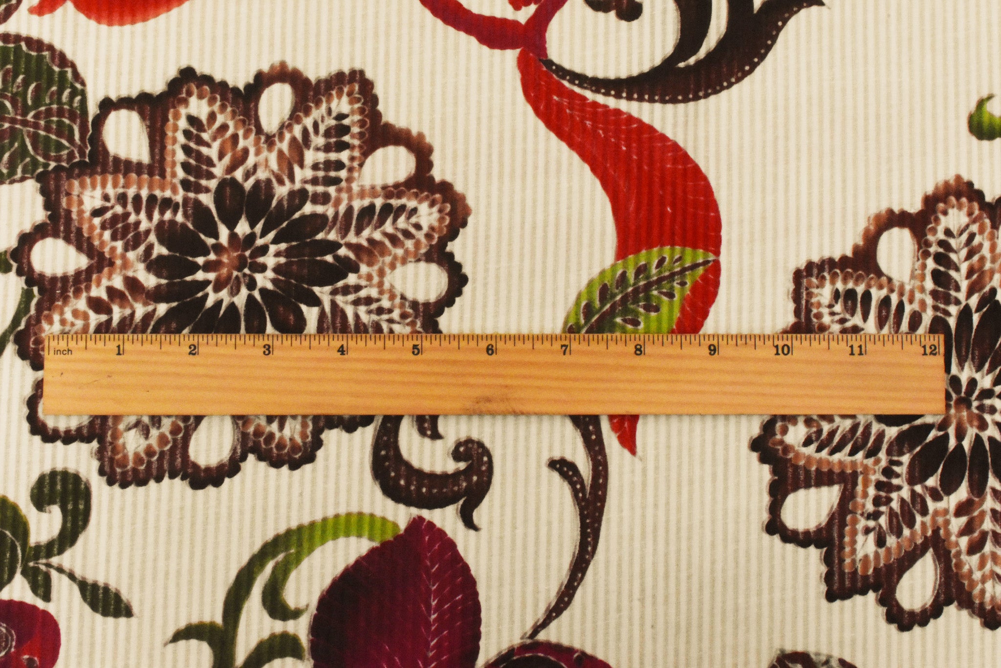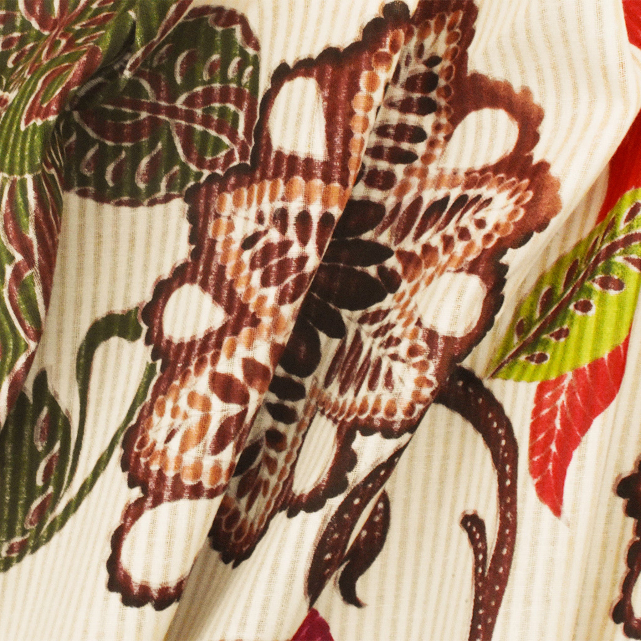 Beige-Brown-Multi Floral Printed Cotton Striped Leno Woven Fabric