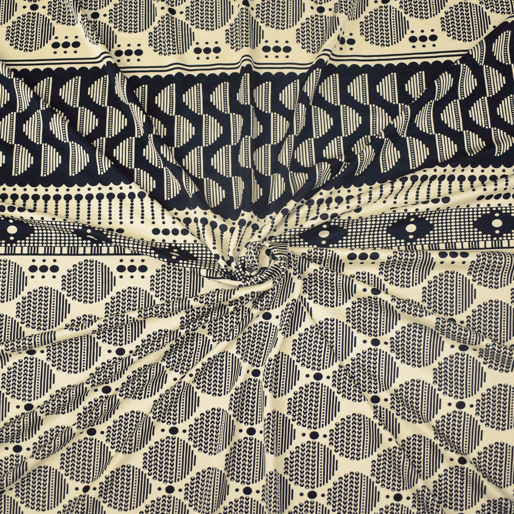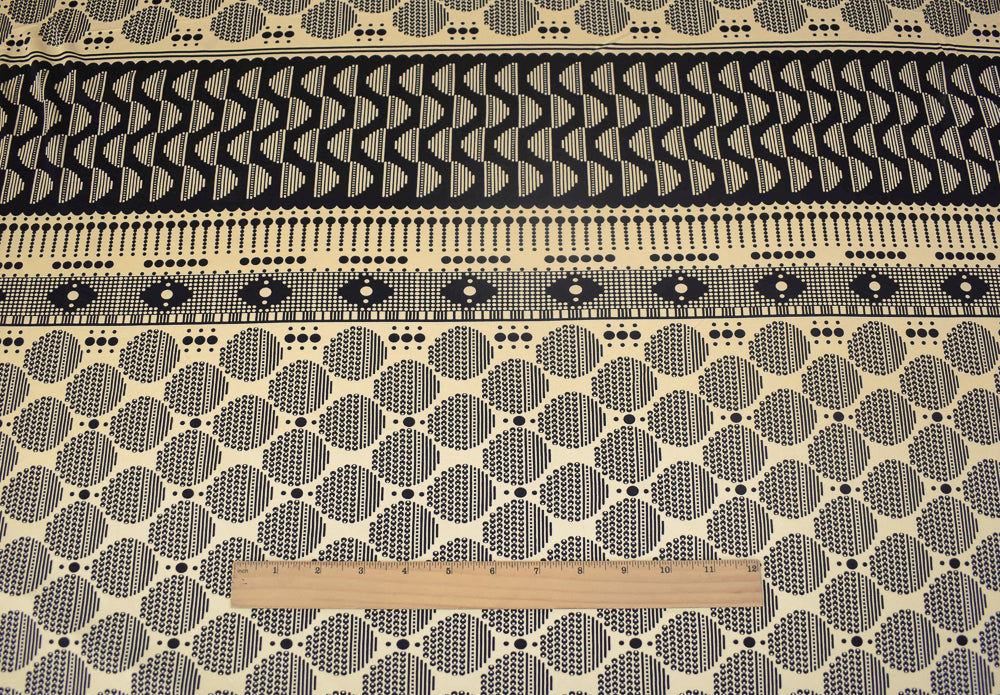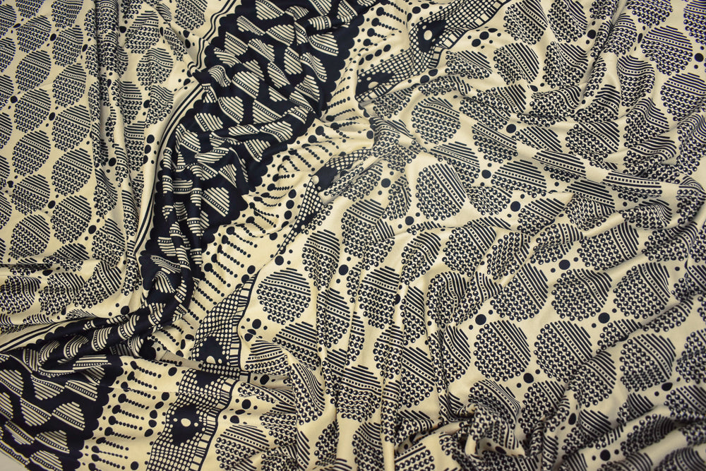 Black-Beige Dot Striped Pattern Printed Stretch Silk Jersey Knit Fabric