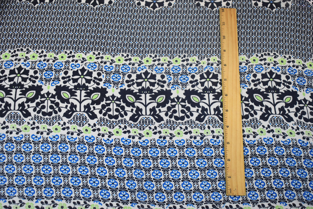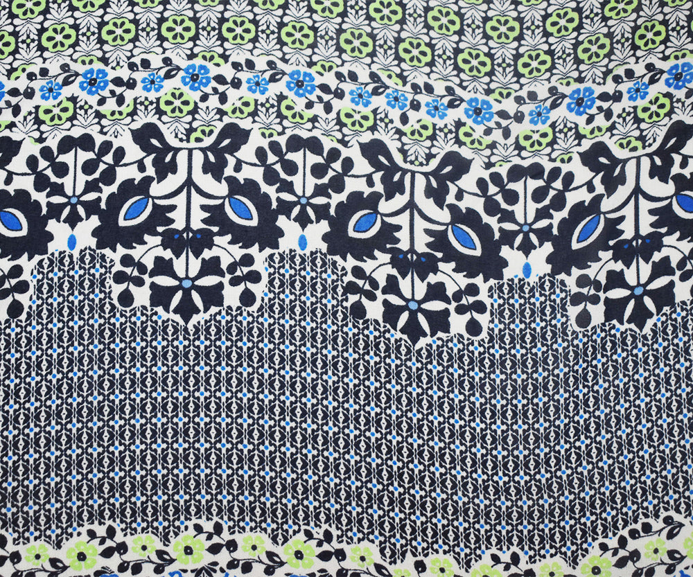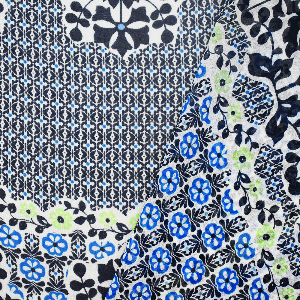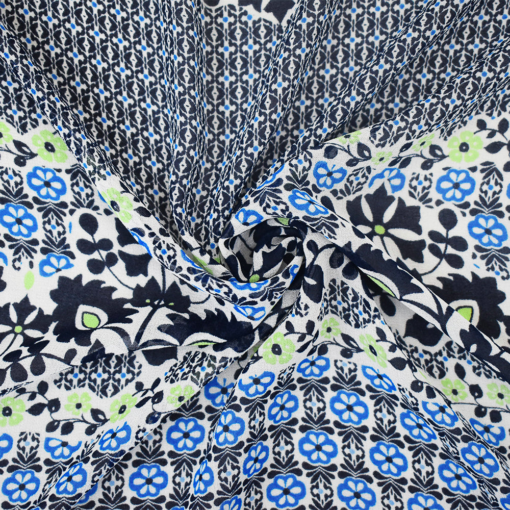 Black-Blue-Multi Abstract Floral Printed Poly Chiffon Woven Fabric