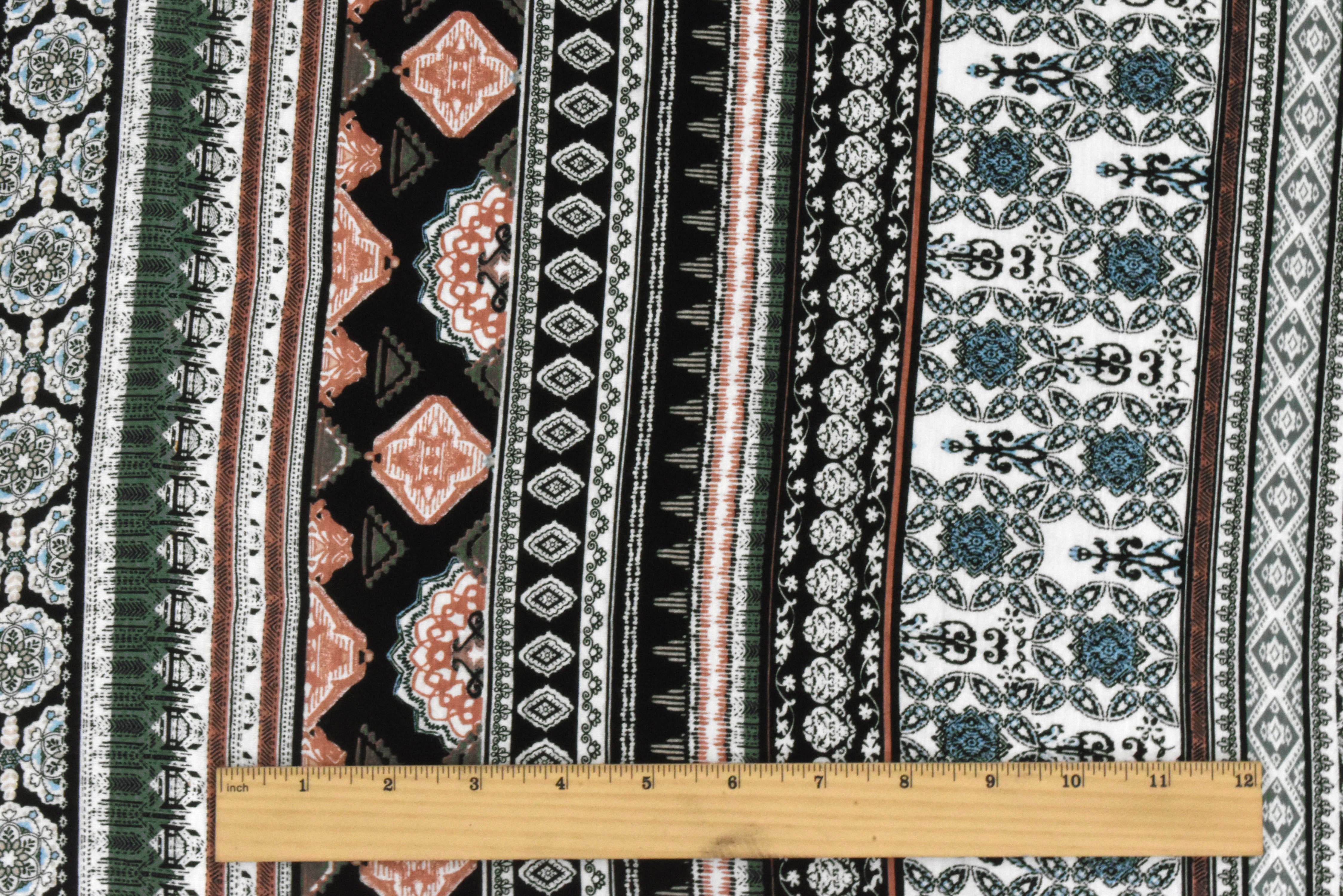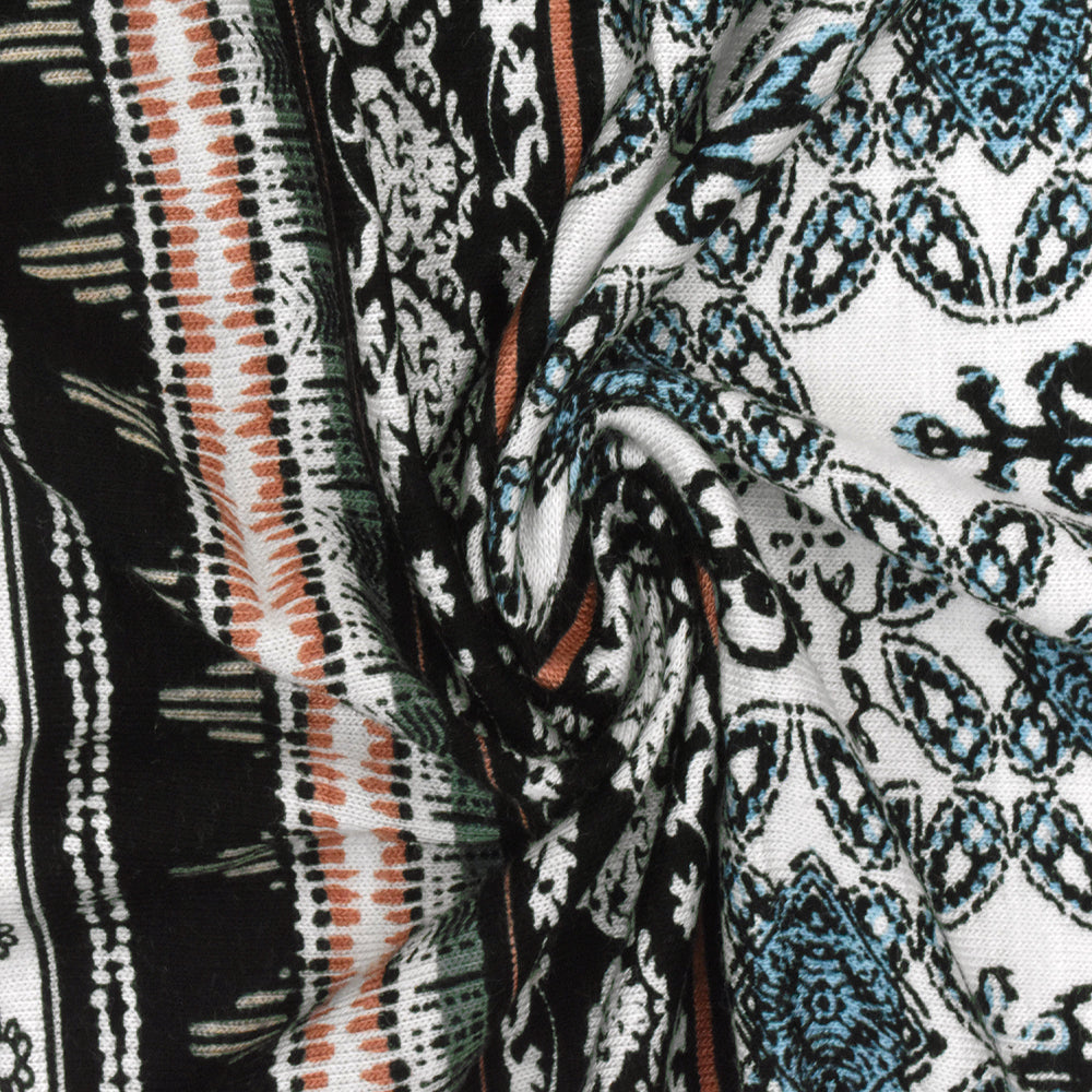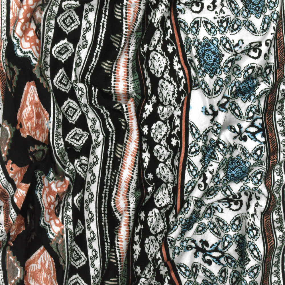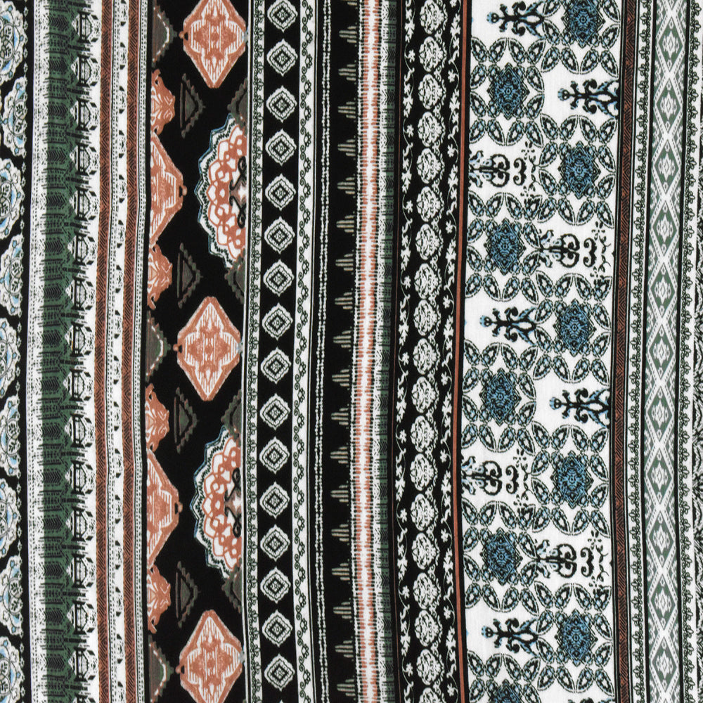 Black-Green-Multi Moroccan Stripe Printed Rayon Stretch Jersey Knit Fabric