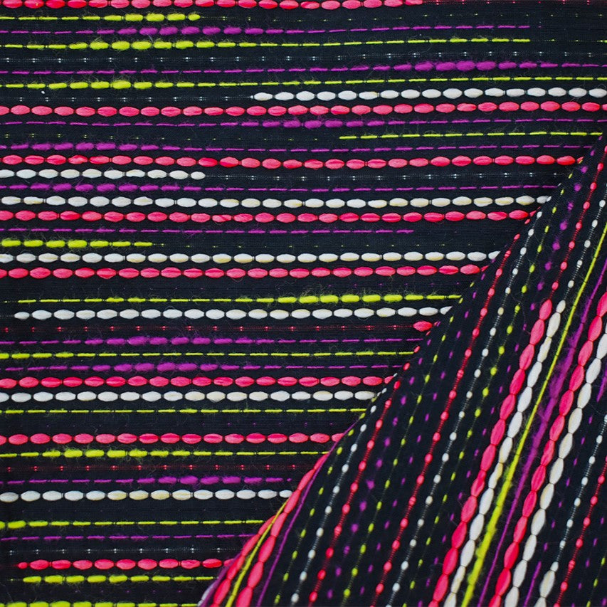 Black-Neon-Multi Stripe Slub Texture Woven Fabric