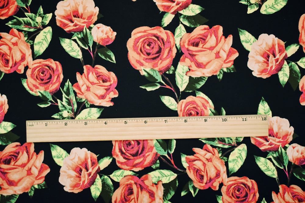 Black-Orange-Multi Cotton Stretch Spandex Floral Print Poplin Woven Fabric