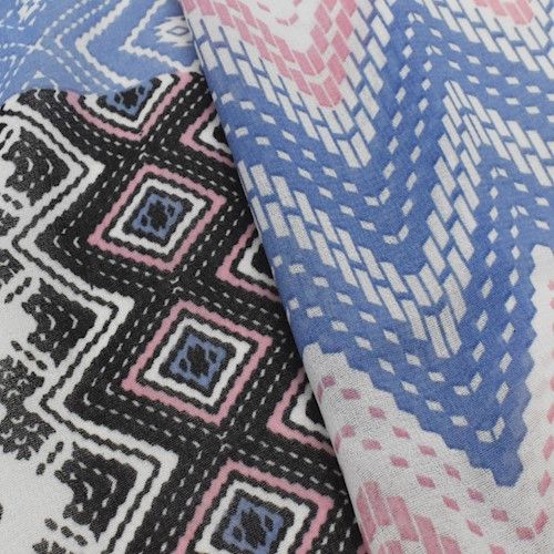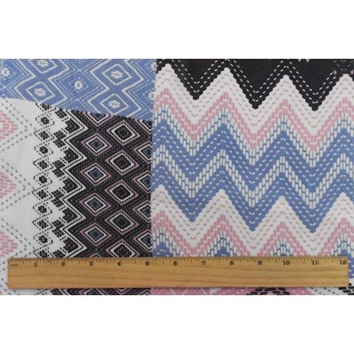 Black/Pink/Multi Chevron Patch Printed Chiffon Woven Fabric