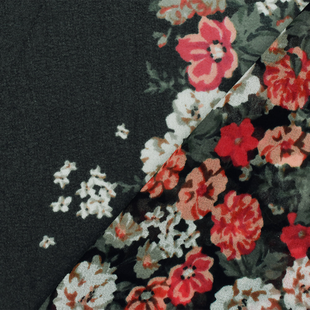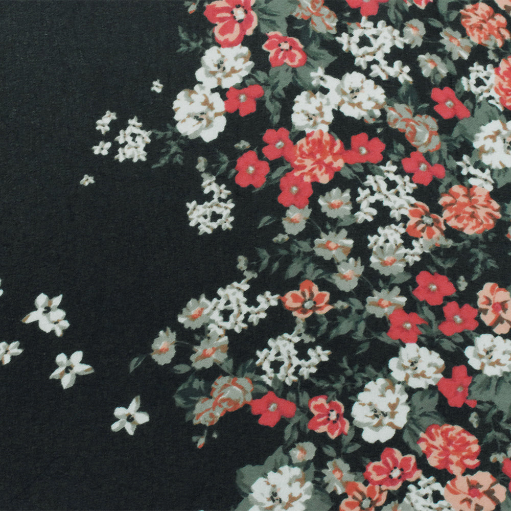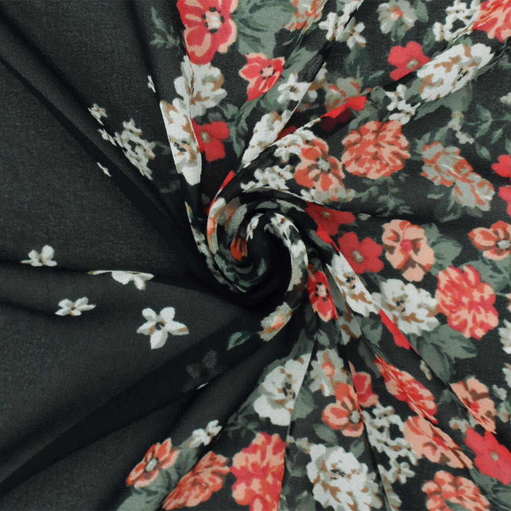 Black-Red-Multi Floral Printed Poly Chiffon Woven Fabric