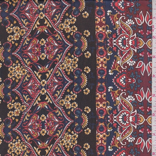 Black/Slate Multi Stylized Stripe Chiffon Fabric