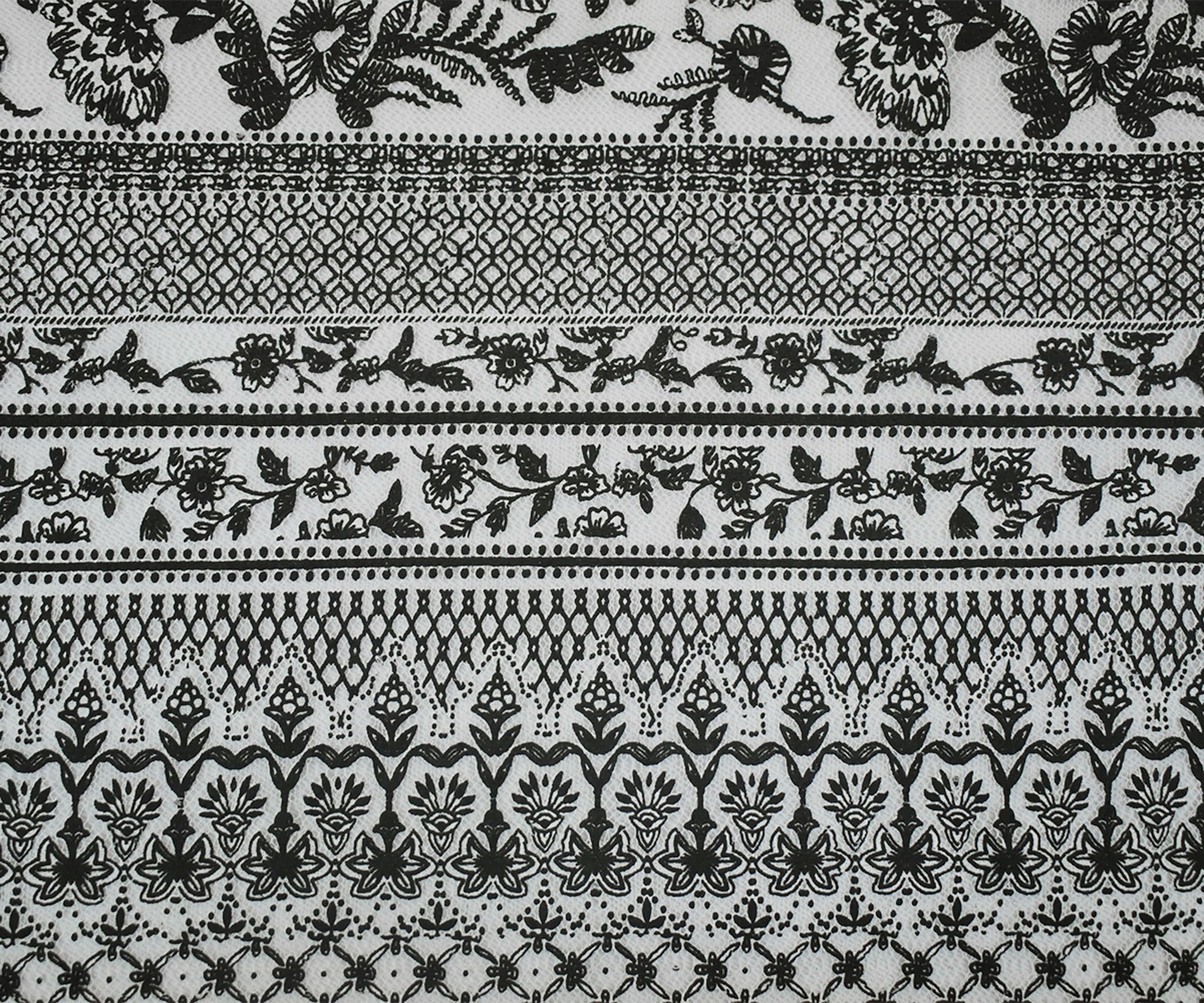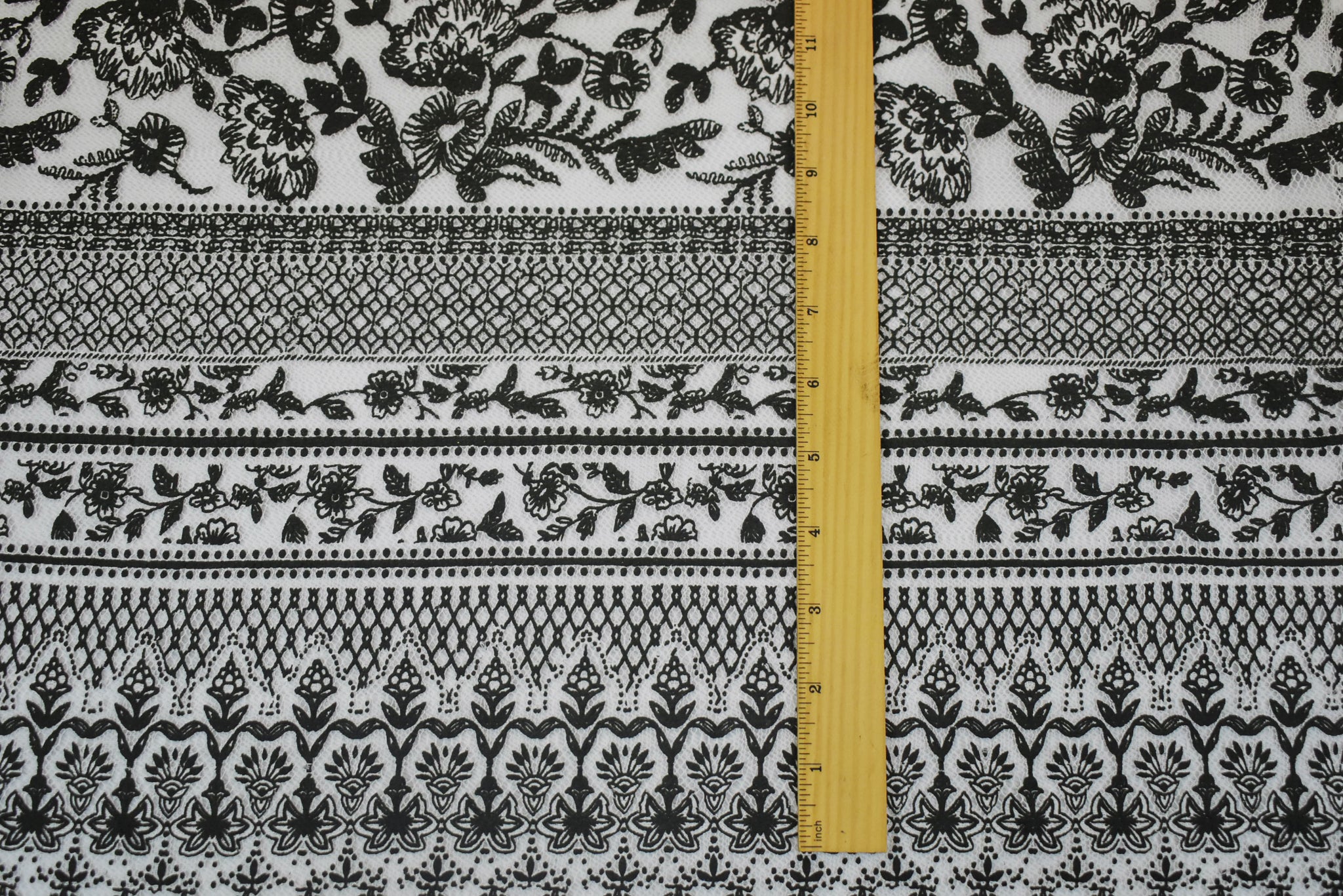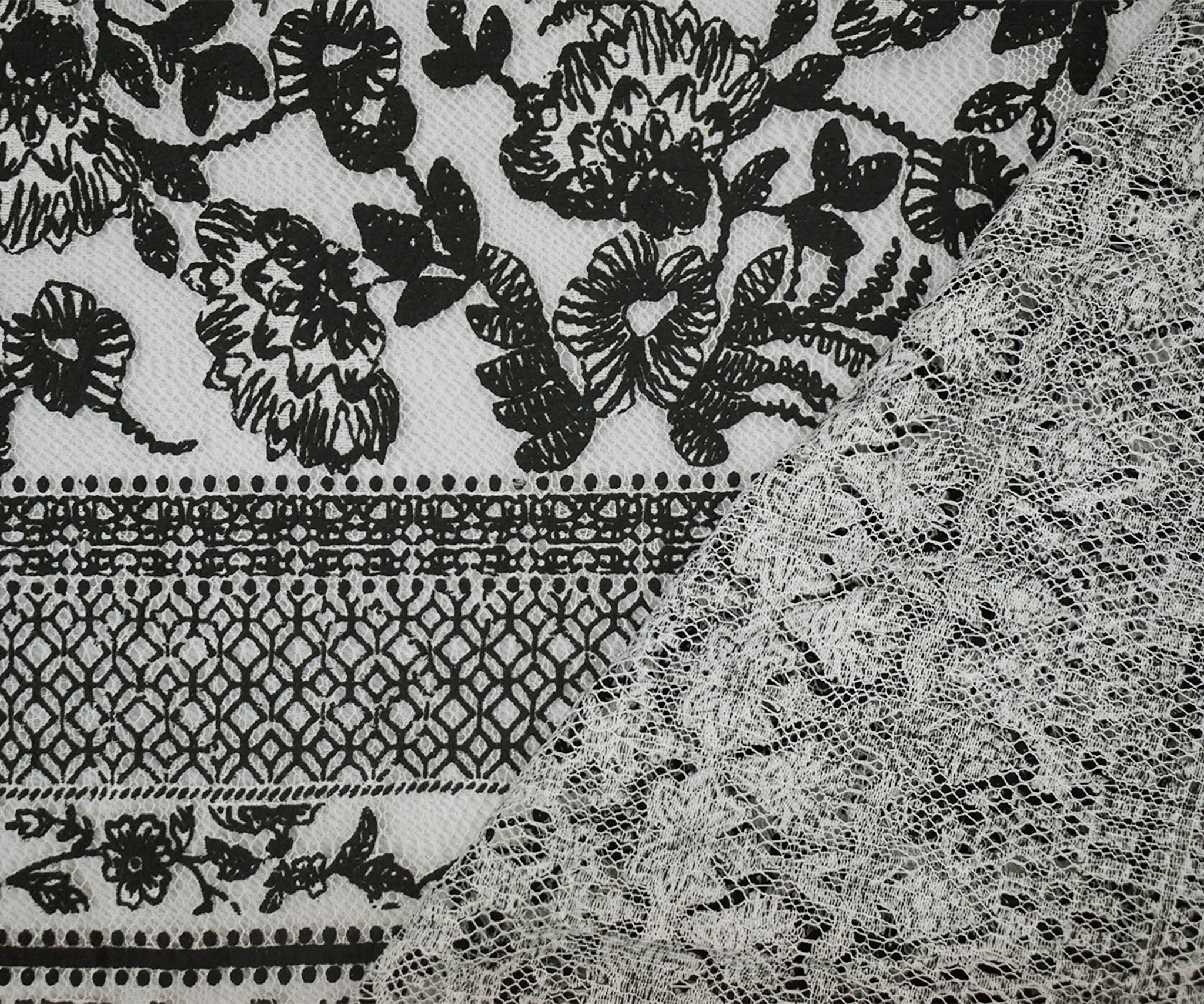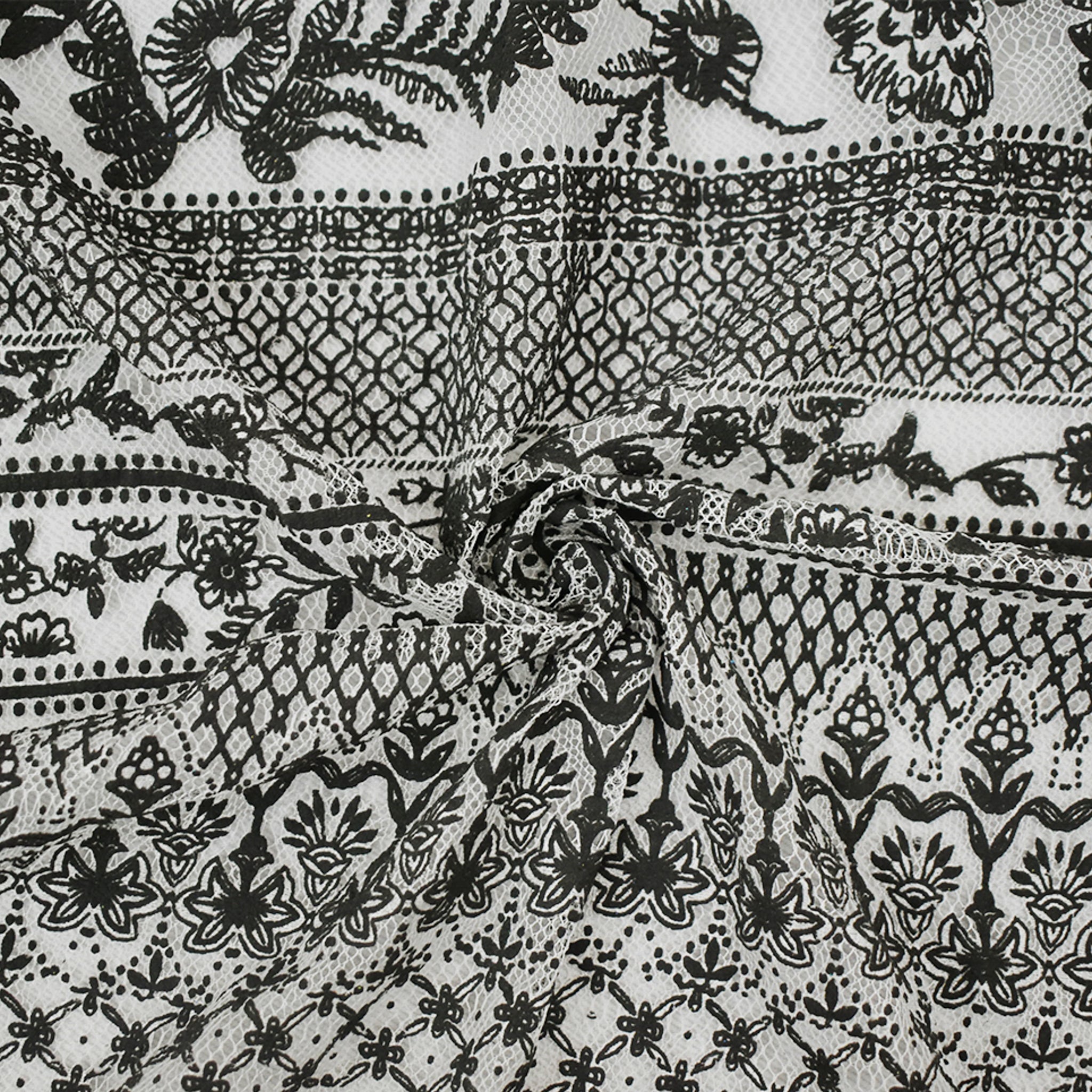 Black-White Cotton Nylon Floral Printed Mesh Fabric